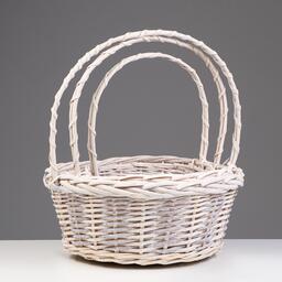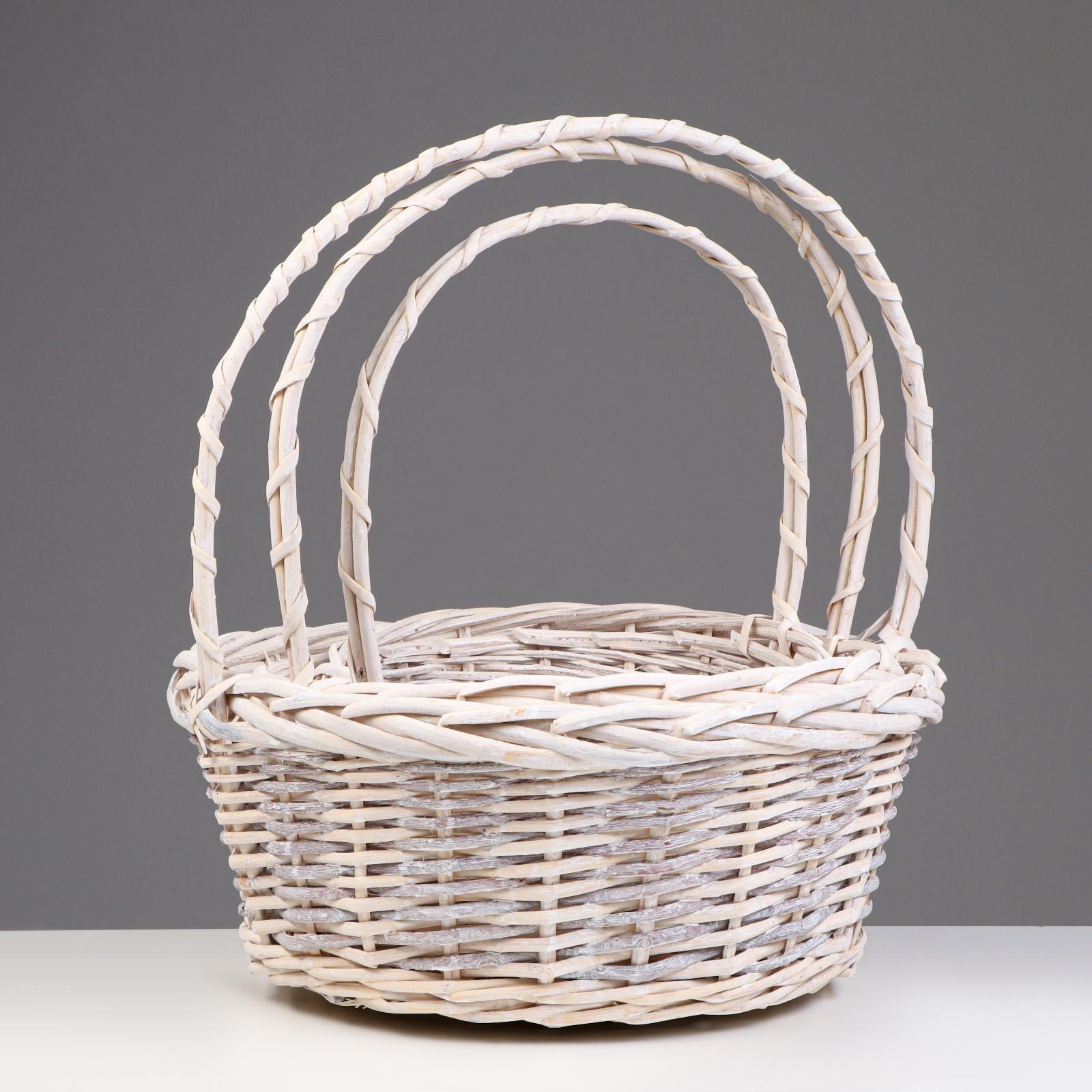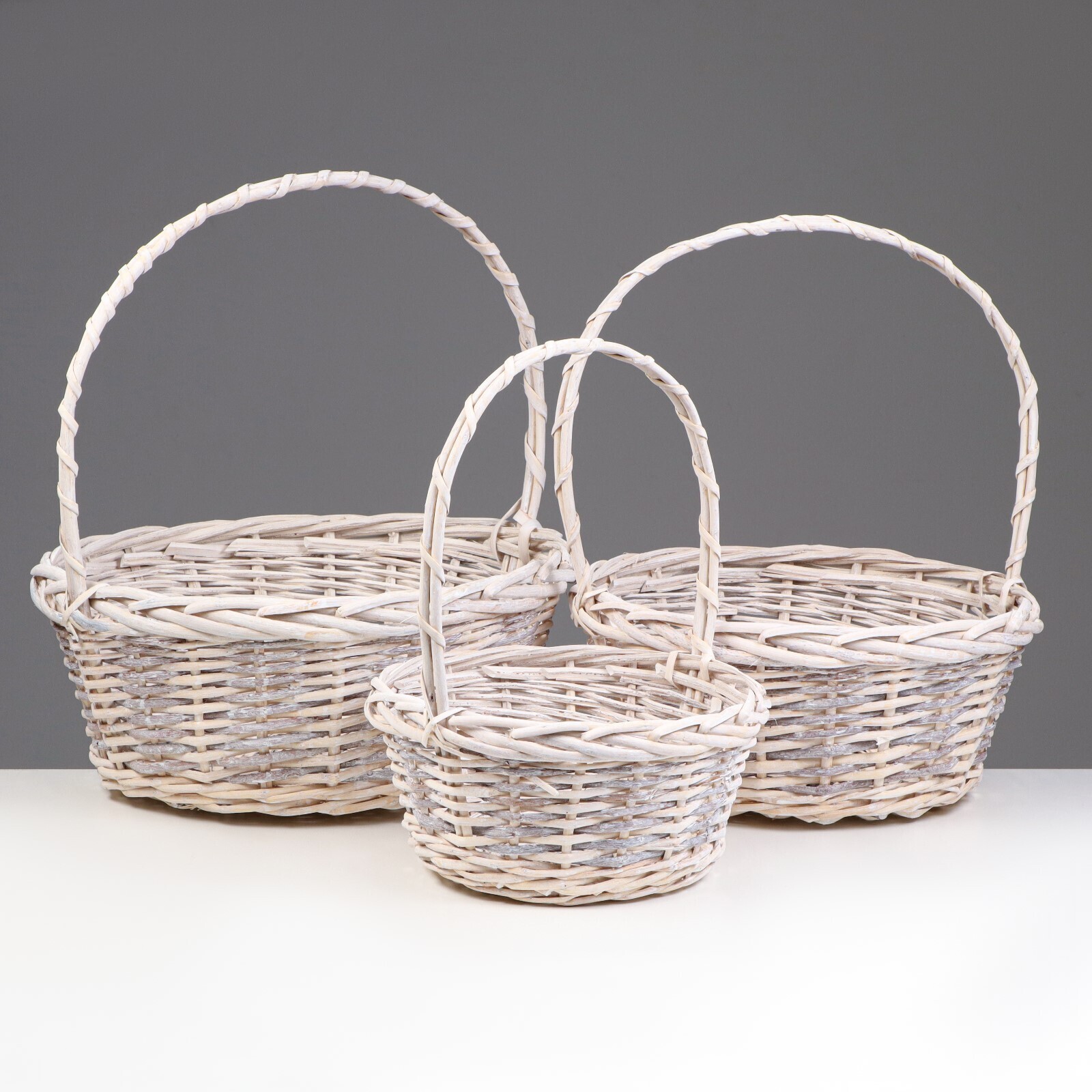 Набор плетеных корзин, 3 шт, 41х41х17/45, 34х34х15/40, 28х28х13/35 см, белый-серый, ива