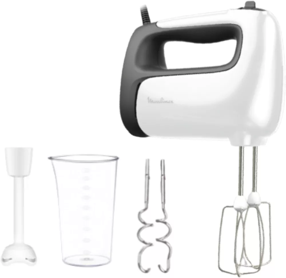 Ручной миксер, мощность 500 Вт, количество скоростей 5, режим смешивания турборежим, кнопка выброса насадок, насадки: блендер, венчики для взбивания, для теста.