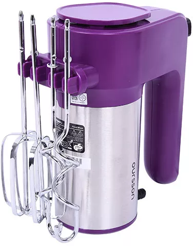Ручной миксер, мощность 400 Вт, количество скоростей 6, режим смешивания турборежим, приспособление для хранения, кнопка выброса насадок, насадки: венчики для взбивания, для теста.
