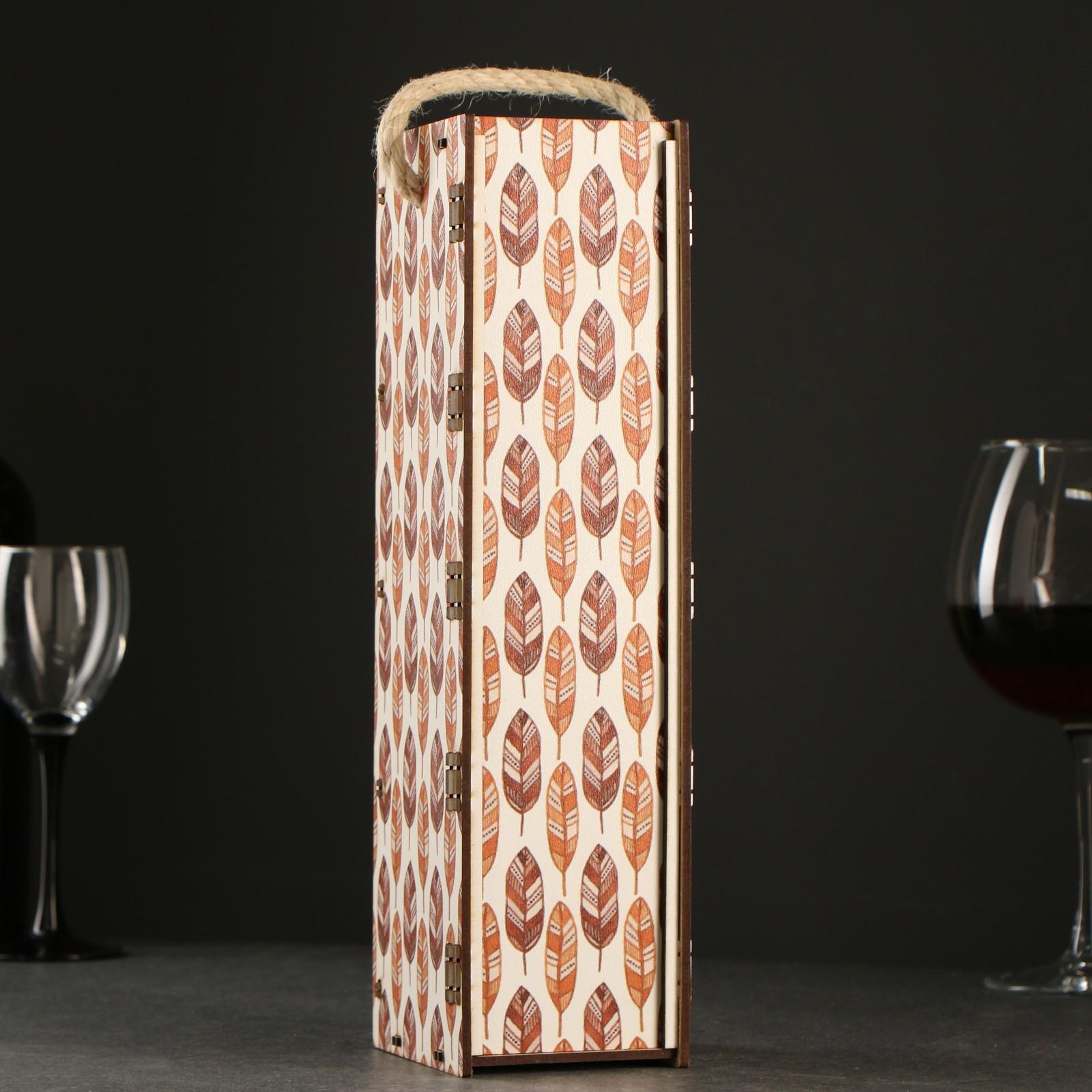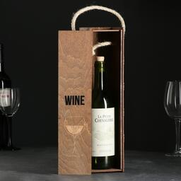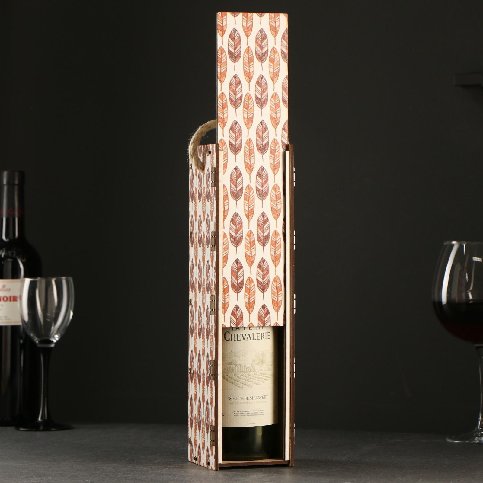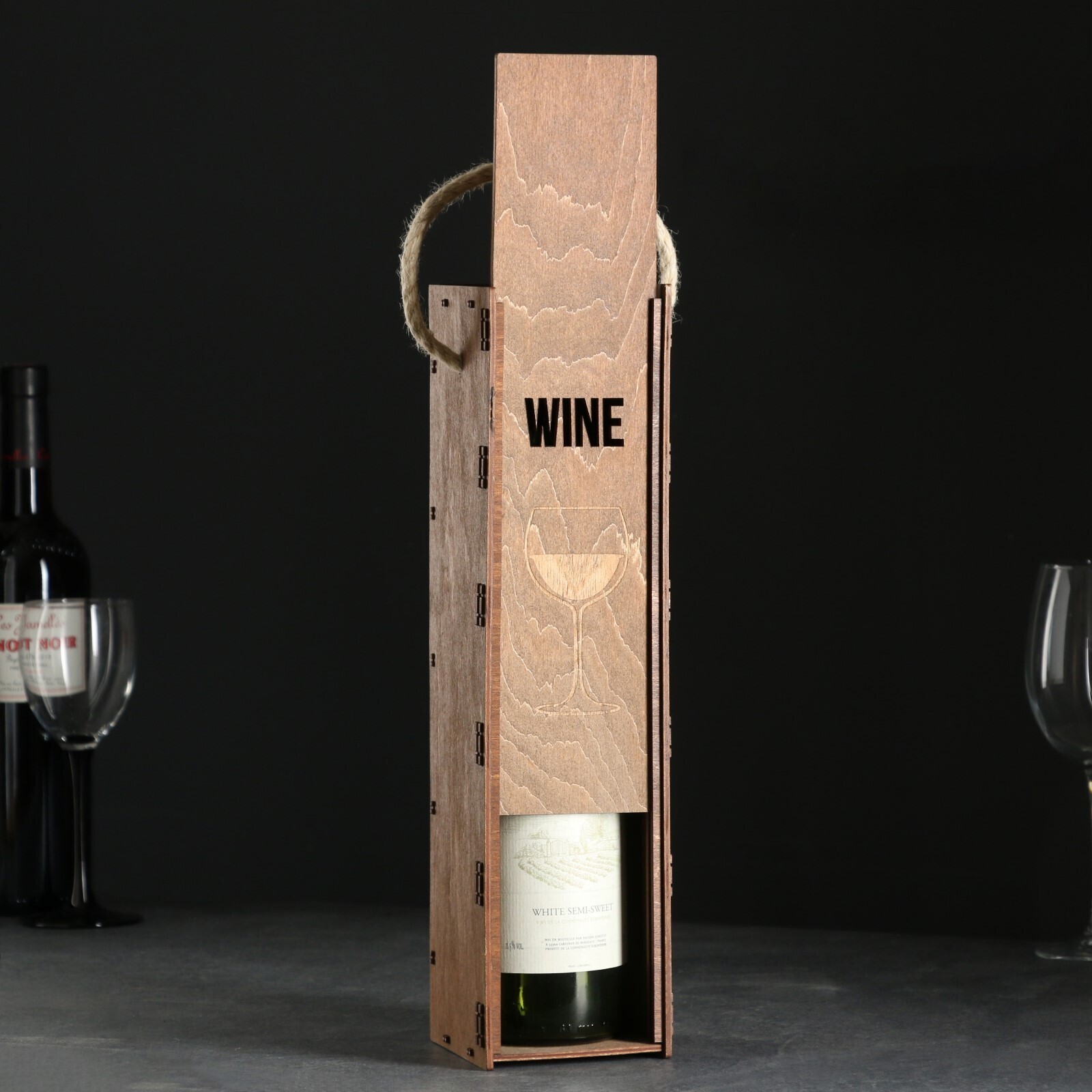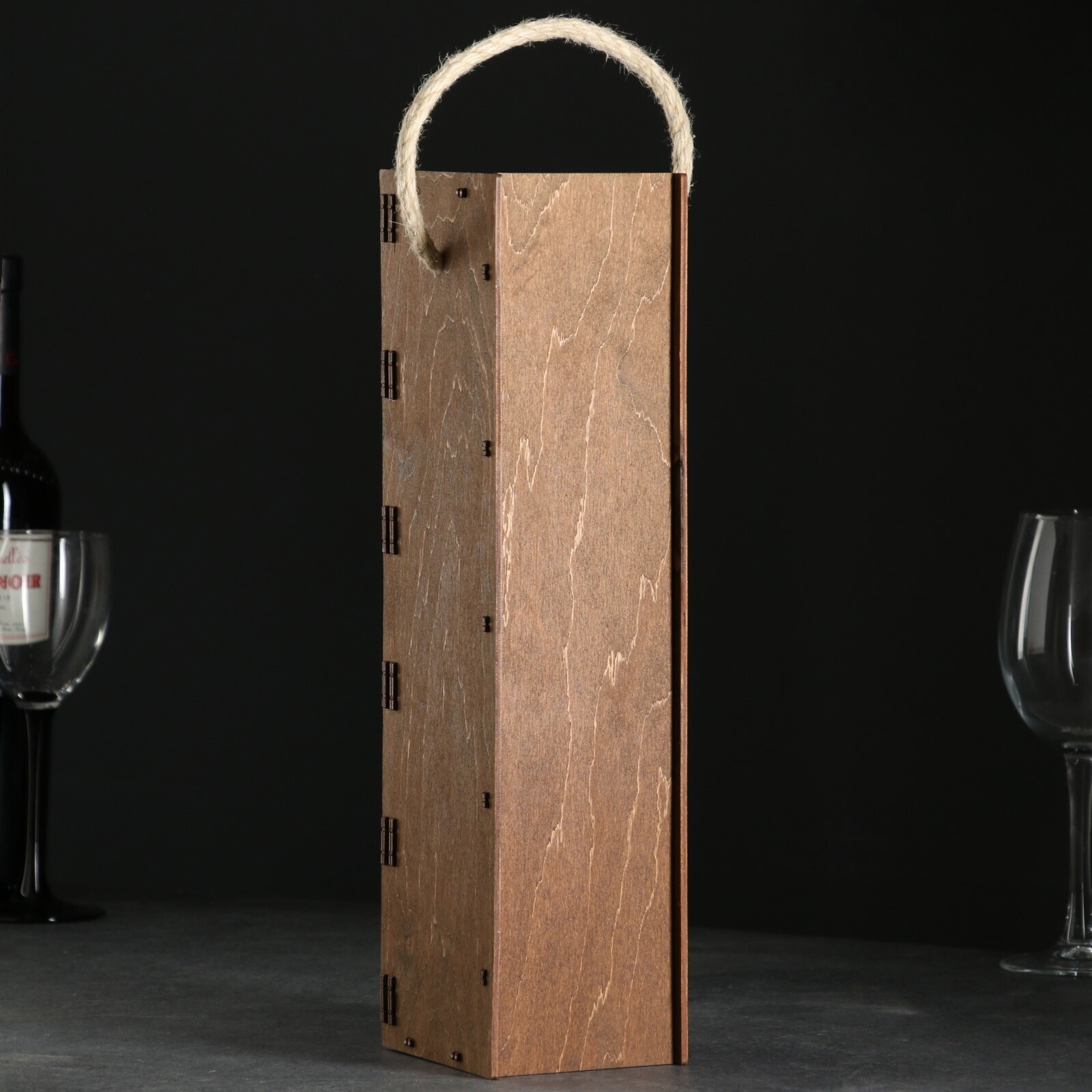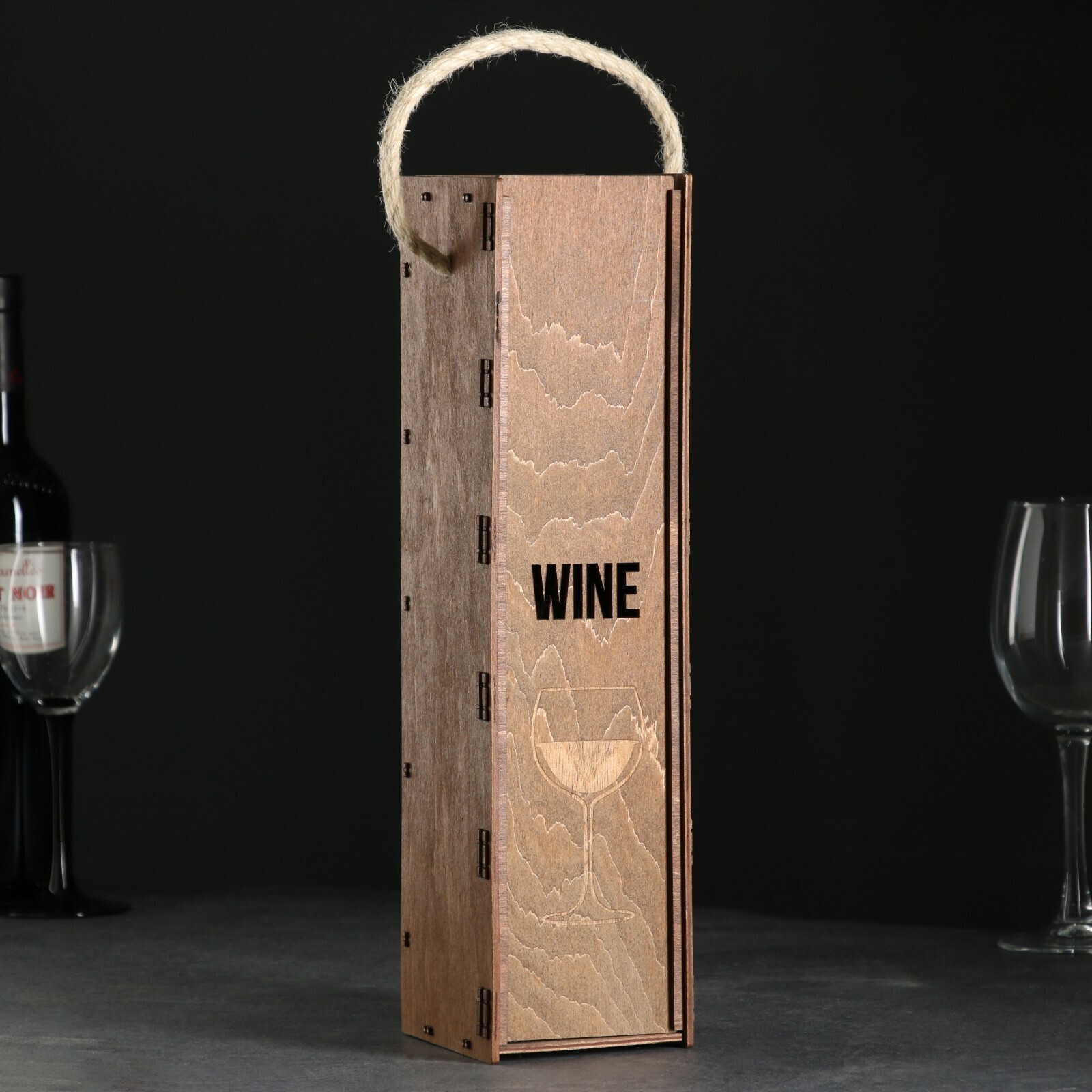 Короб подарочный деревянный "Вино", 33х9,4х8,5 см, с выдвижной крышкой и льняной ручкой