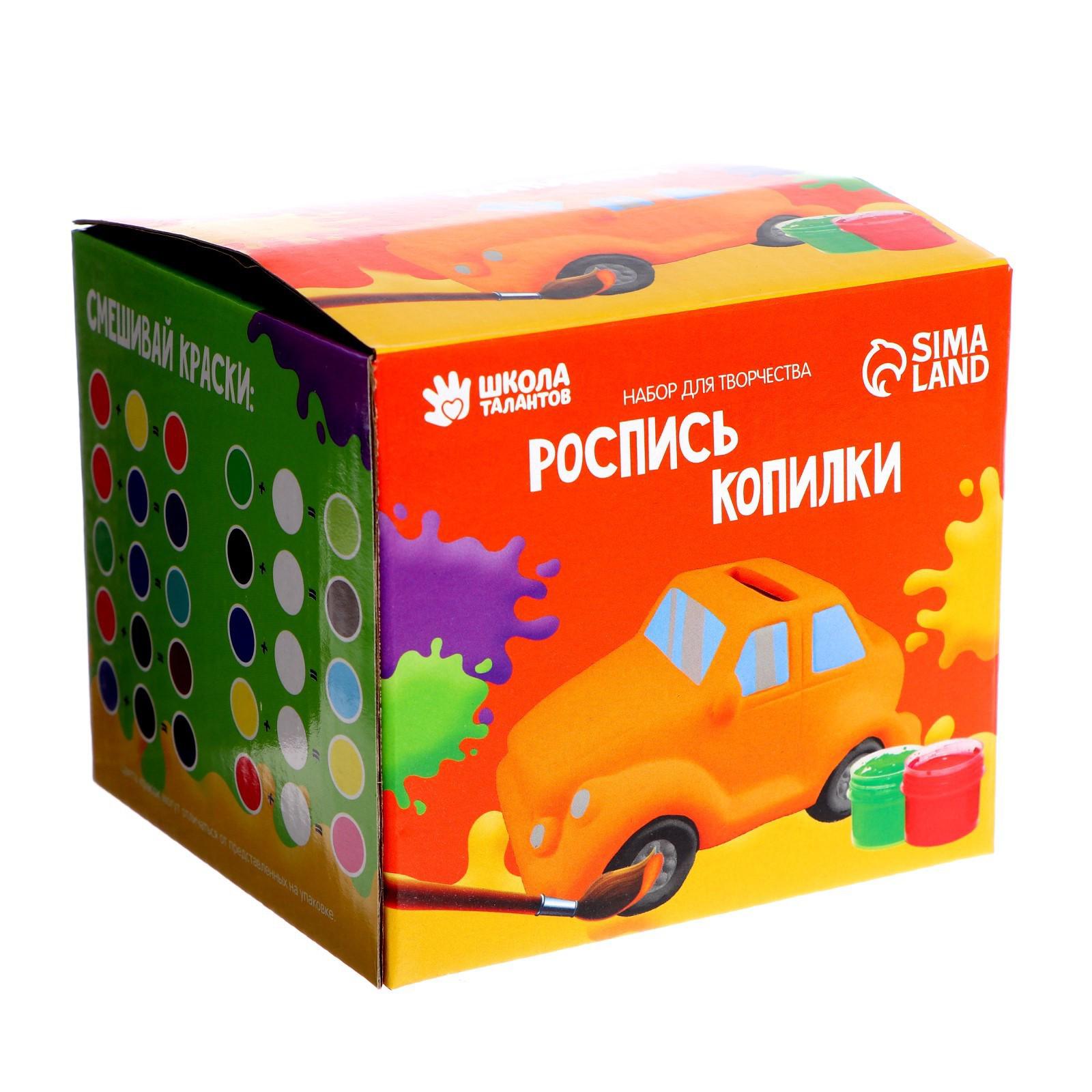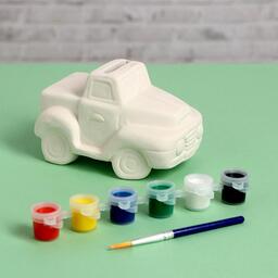 Роспись по гипсу, копилка многоразовая «Машина», краски 6 цв по 2 мл, кисть