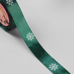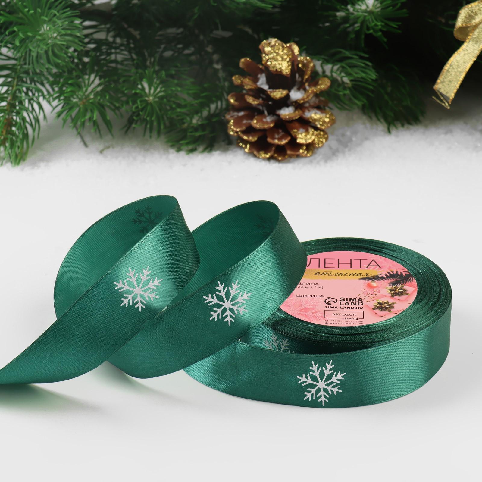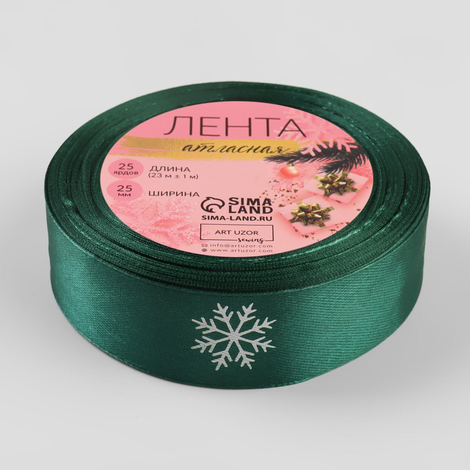 Лента атласная «Снежинки», 25 мм, 23 ± 1 м, цвет зелёный/белый №056