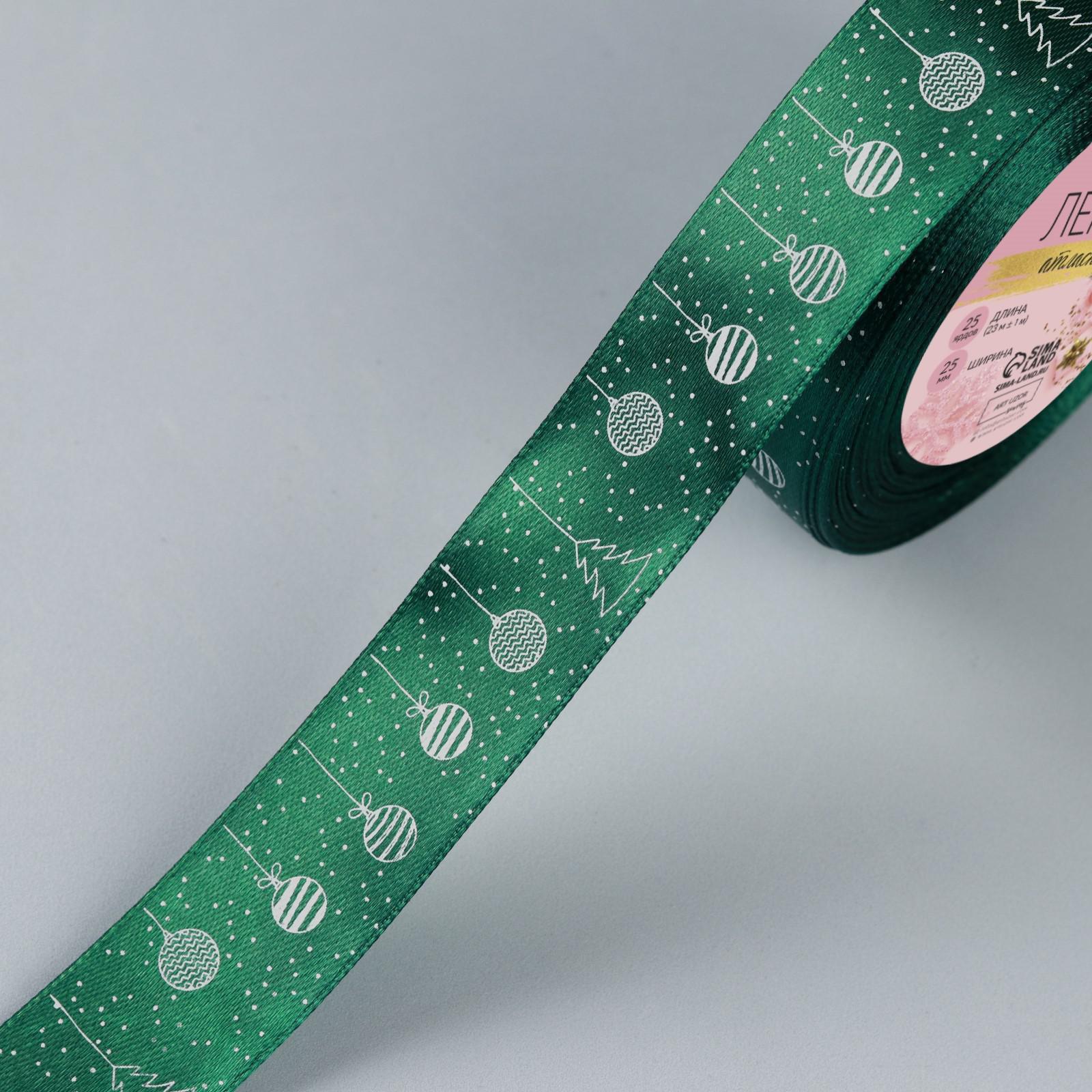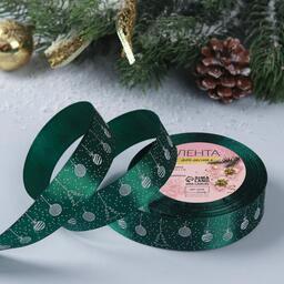Лента атласная «Ёлочные игрушки», 25 мм, 23 ± 1 м, цвет тёмно-зелёный №49