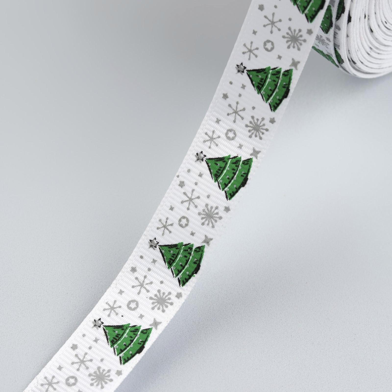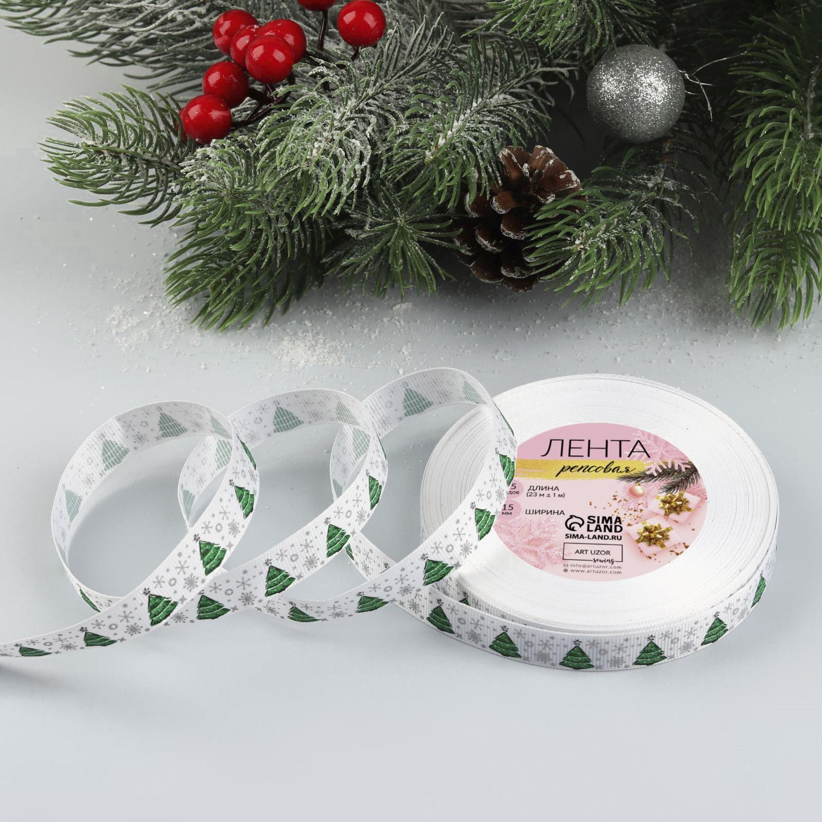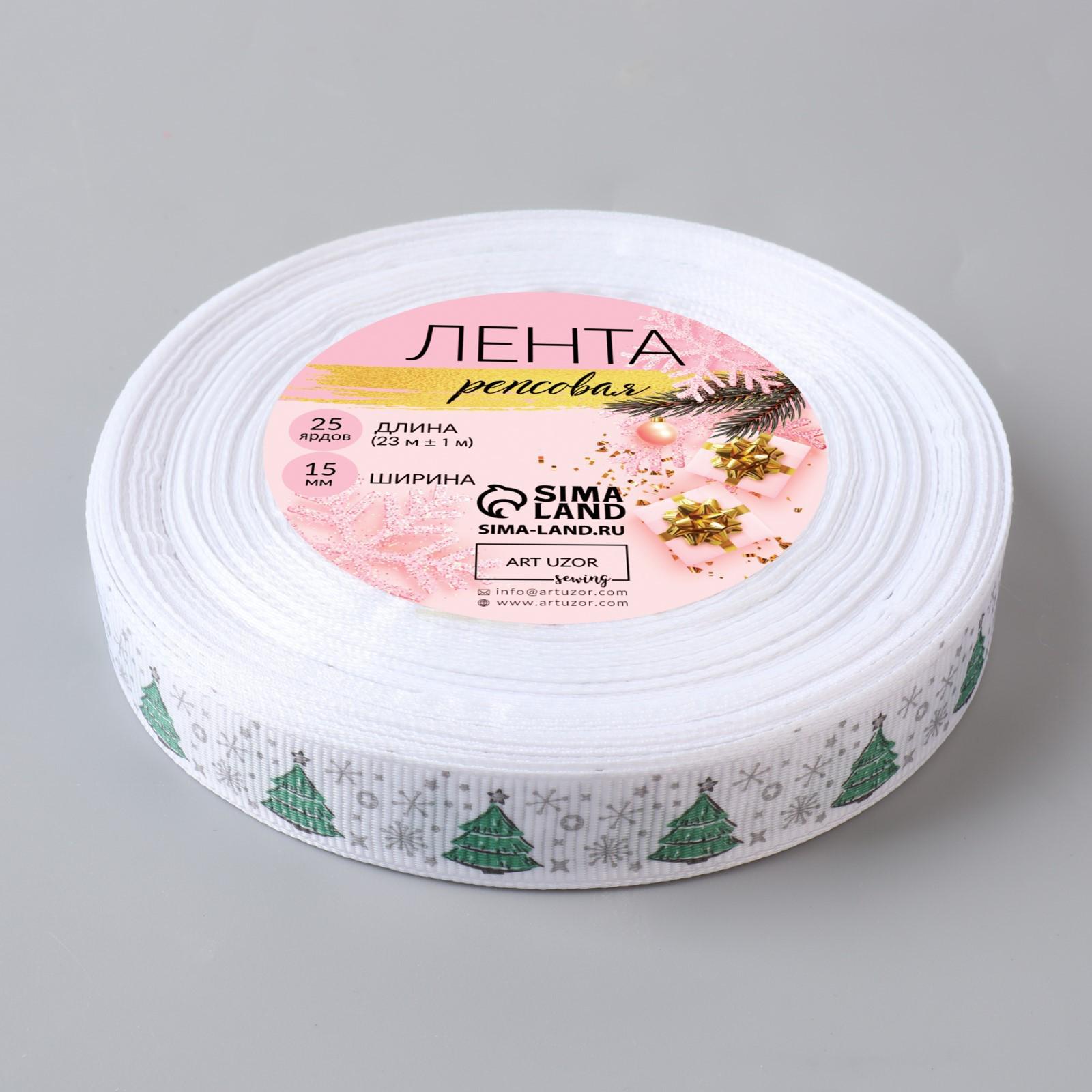 Лента репсовая «Ёлки», 15 мм, 23 ± 1 м, цвет белый №1001