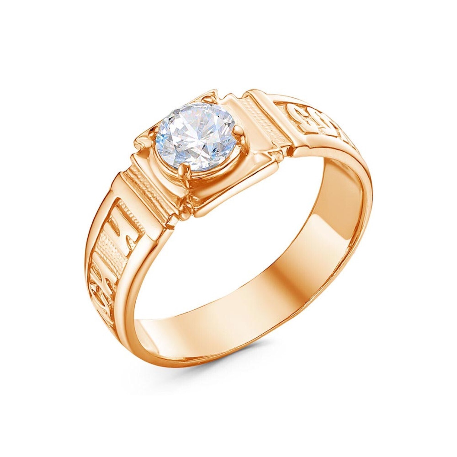 Кольцо "Спаси и сохрани" со вставкой, розовое золочение, 18 размер