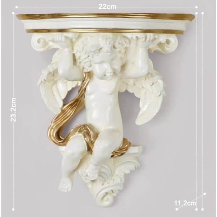 Декор настенный-полка "Ангел, 23.2 x 22 см, белая с золотом