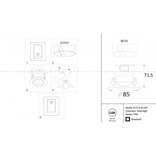 Встраиваемый светодиодный светильник Maytoni Phill DL014-6-L9W