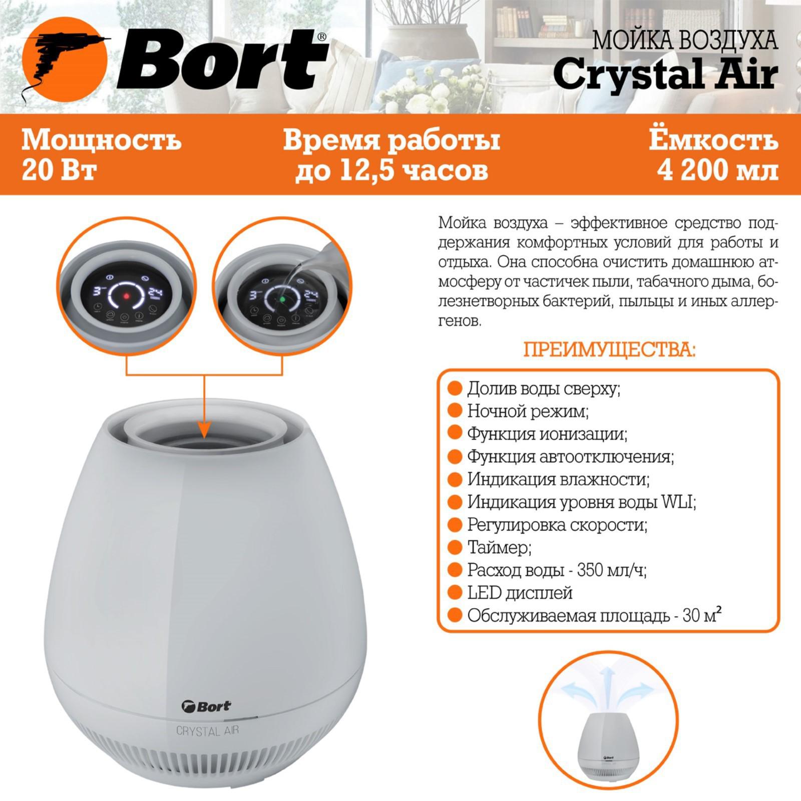 Очиститель воздуха BORT Crystal Air, 15 Вт, 350 мл/ч, до 30 м2, белый