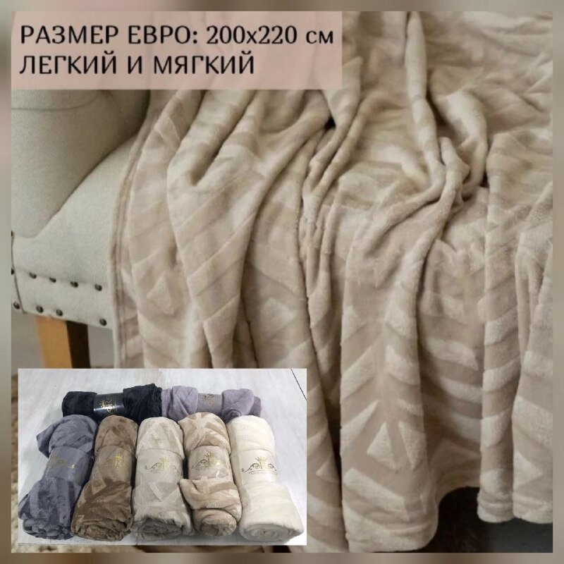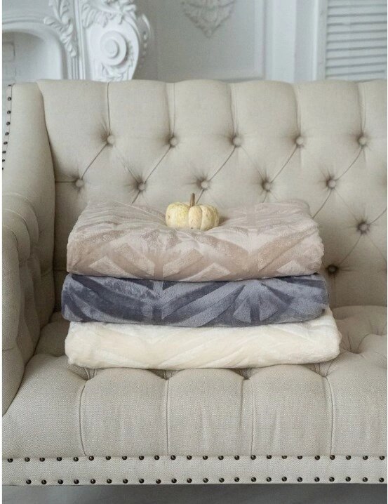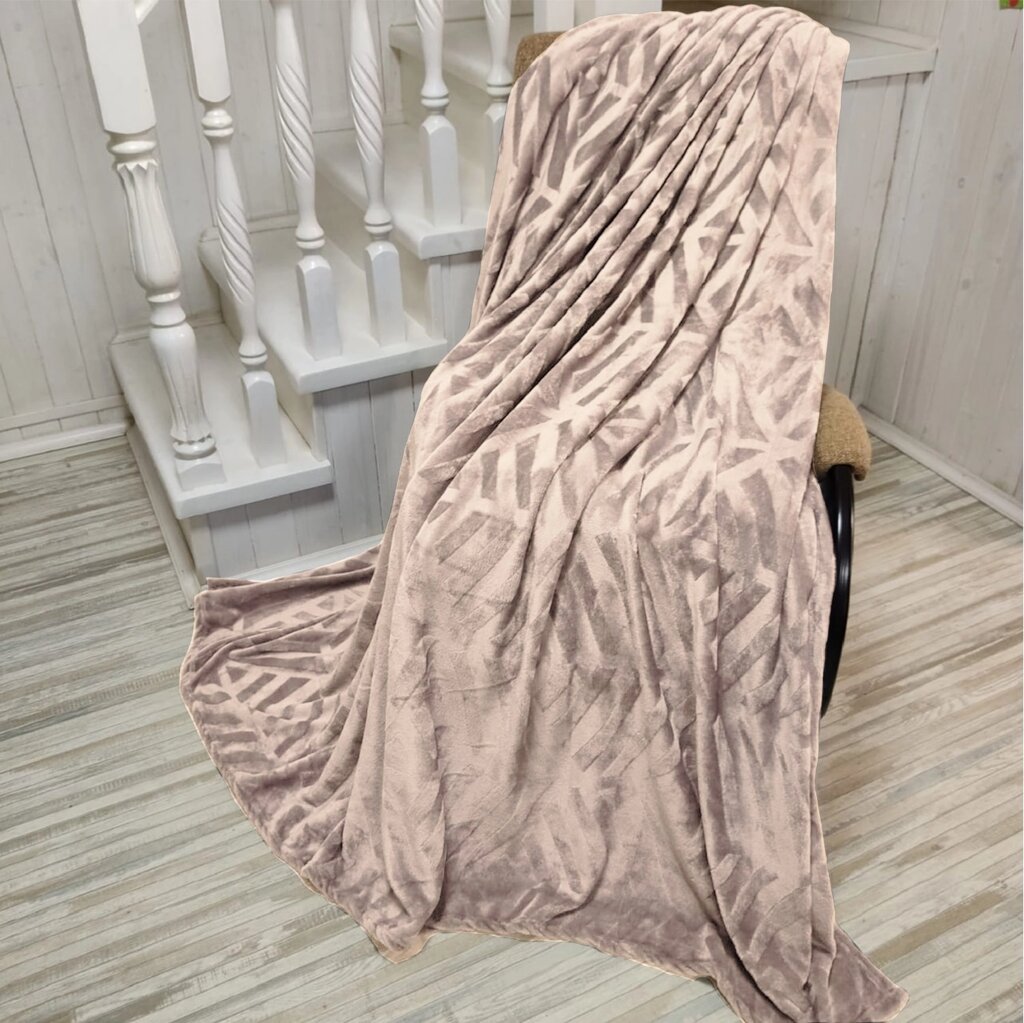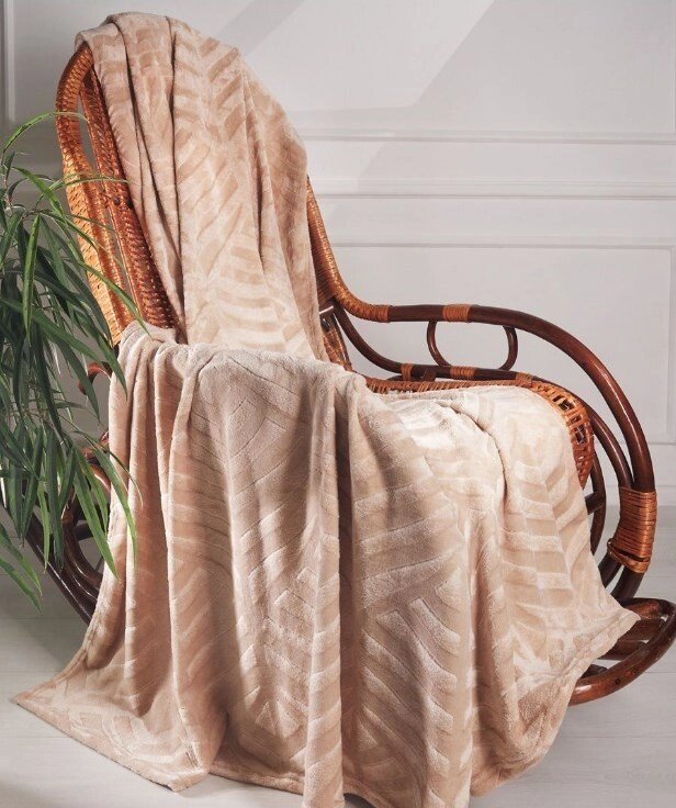 Плед флисовый Премиум 200 х 220 см (Северная Осетия) Рисунок "Волна" Абрикосовый тон