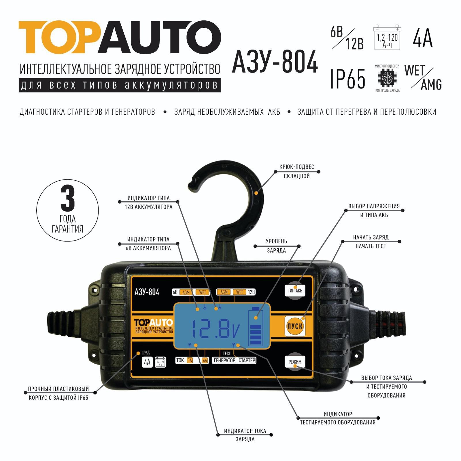 Интеллектуальное зарядное устройство для АКБ TOPAUTO АЗУ-804, 4 А, АКБ 6/12 В до 120 Ач