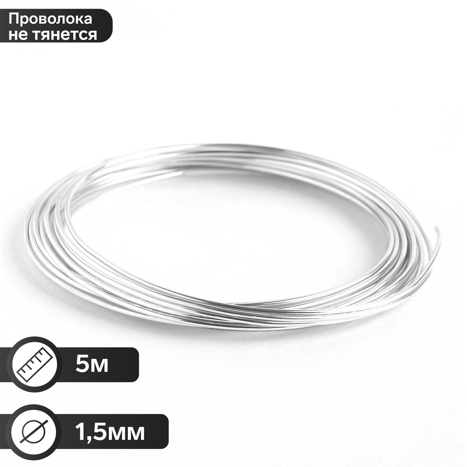 Проволока для плетения D=1,5мм, намотка 5м, цвет серебра