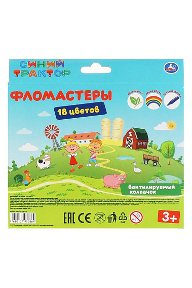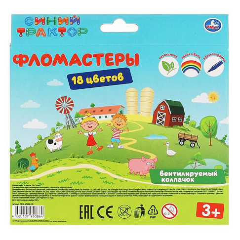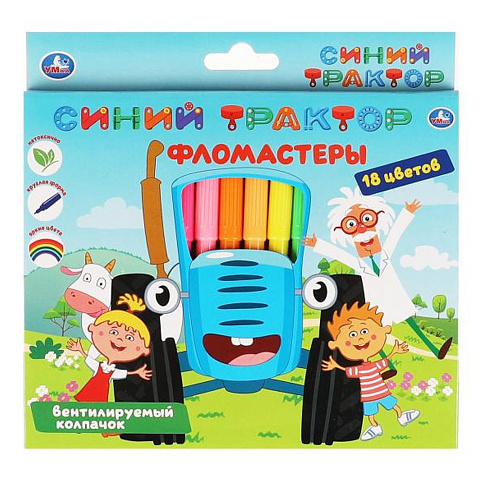 Фломастеры Синий ТРАКТОР 18 цветов Умка FRK18-67358-STR