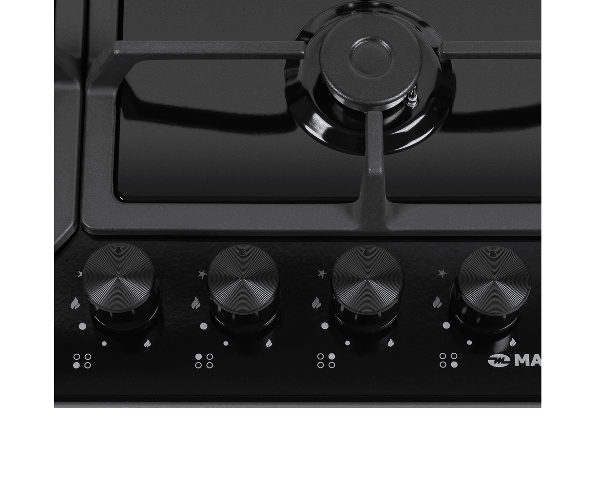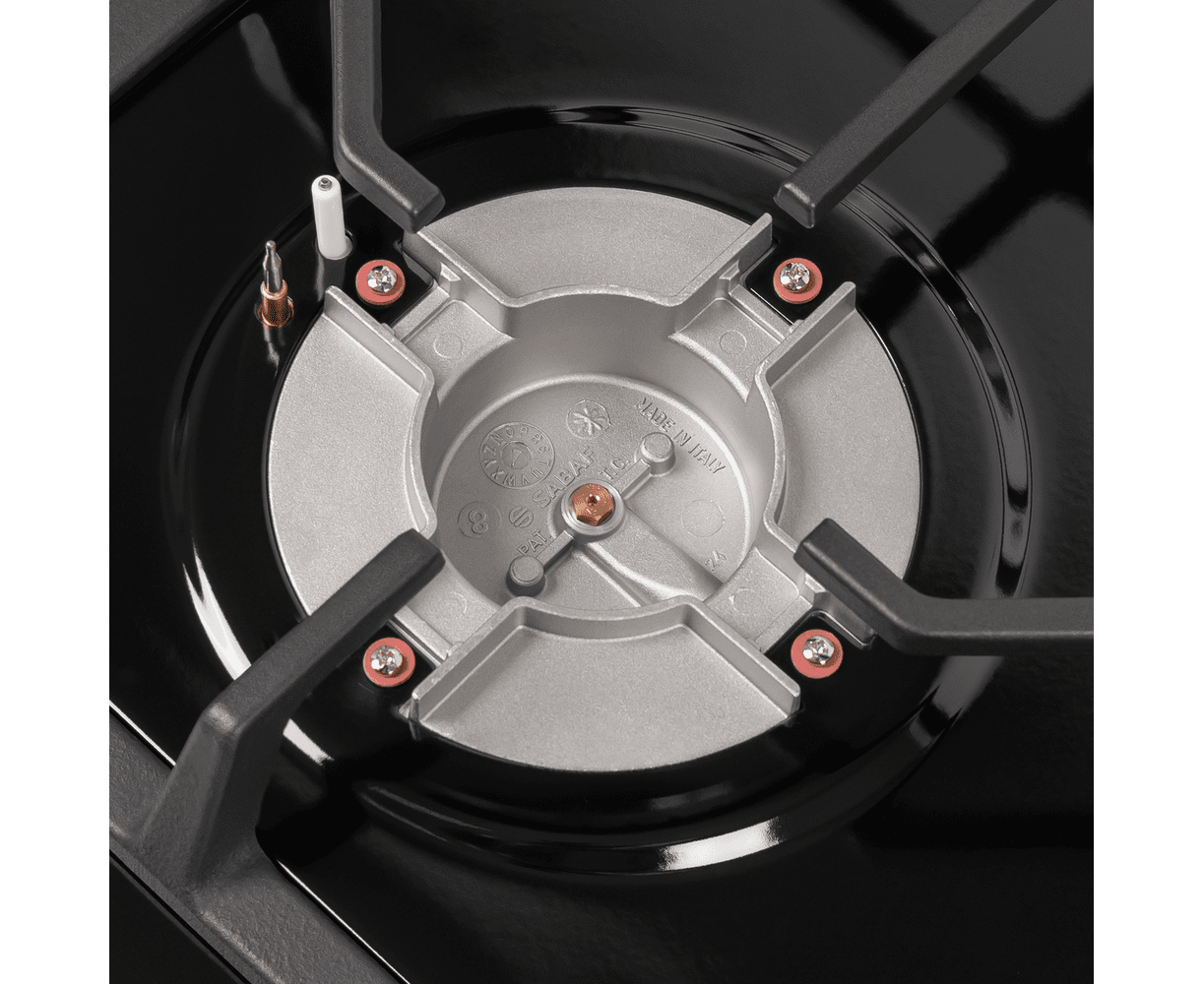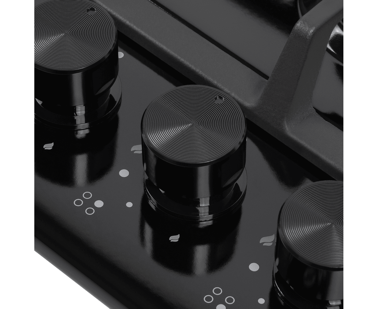 Стильная встраиваемая газовая варочная панель на 4 конфорки шириной 60 см может работать от магистрального газа и газа в баллоне (тип G30), для этого достаточно использовать специальные жиклеры французской фирмы SOURDILLON, поставляющиеся в комплекте.Панель выполнена нержавеющей стали с теплостойким покрытием из эмали черного цвета. В данной модели установлены высококачественные итальянские горелки SABAF (4 конфорки). Три стандартные конфорки мощностью 1000 Вт, 1700 Вт, 1700 Вт и 1 свермощная WOK-конфорка с двойным пламенем мощностью 3800 Вт.Изменение мощности нагрева и электроподжиг конфорок производится с помощью поворотных регуляторов - полнотелых цельнометаллических ручек, выполненных в черном цвете. Для простоты использования около каждой ручки нанесены информационные изображения: используемая конфорка, подача газа выключена, электроподжиг, максимальное пламя и минимальное пламя.Чугунные решетки, прочные и надежные, расположены вплотную друг к другу, образуя единую рабочую зону. Вы можете одной рукой передвинуть посуду с конфорки на конфорку, не поднимая ее. Система газ-контроля надежно защищает бытовой прибор от утечек газа при неожиданном затухании конфорки.