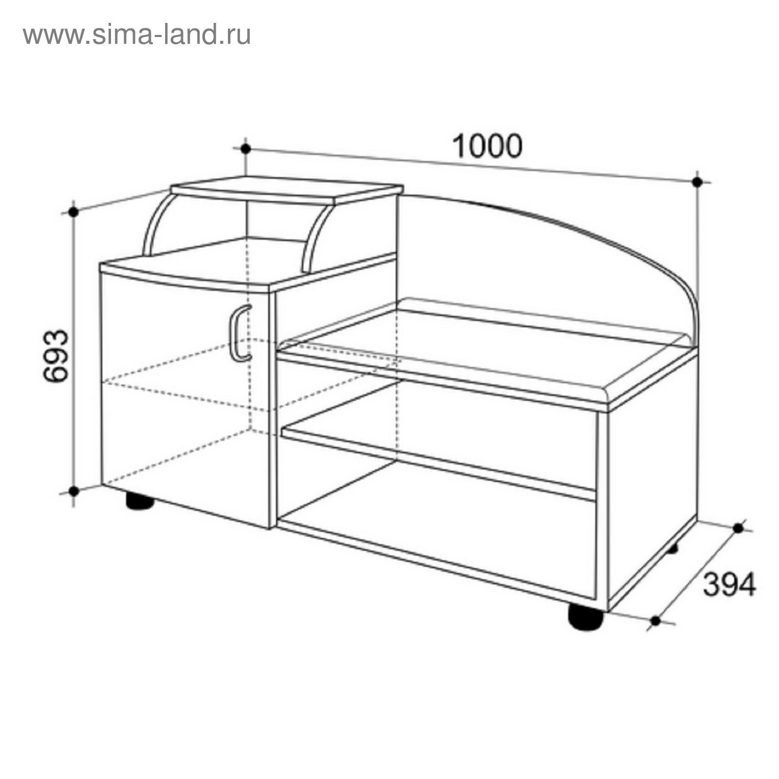 Модель оснащена местом для сидения, тумбой с полочкой и открытой нишей. Помимо обуви, храните там средства по уходу за ней и аксессуары.
