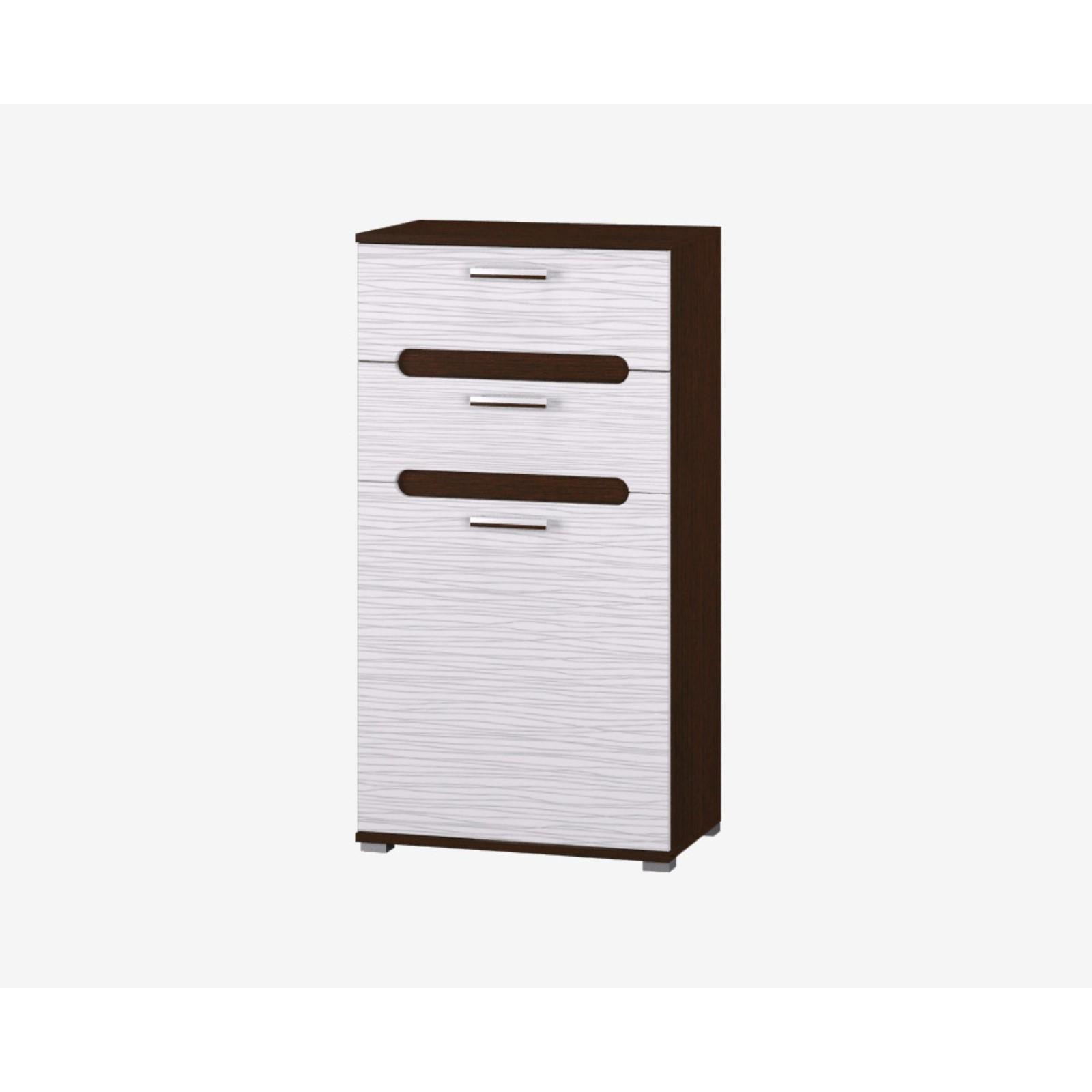 Тумба с дверками и ящиком МИШЕЛЬ 602х386х1150 венге цаво/МДФ белый страйп