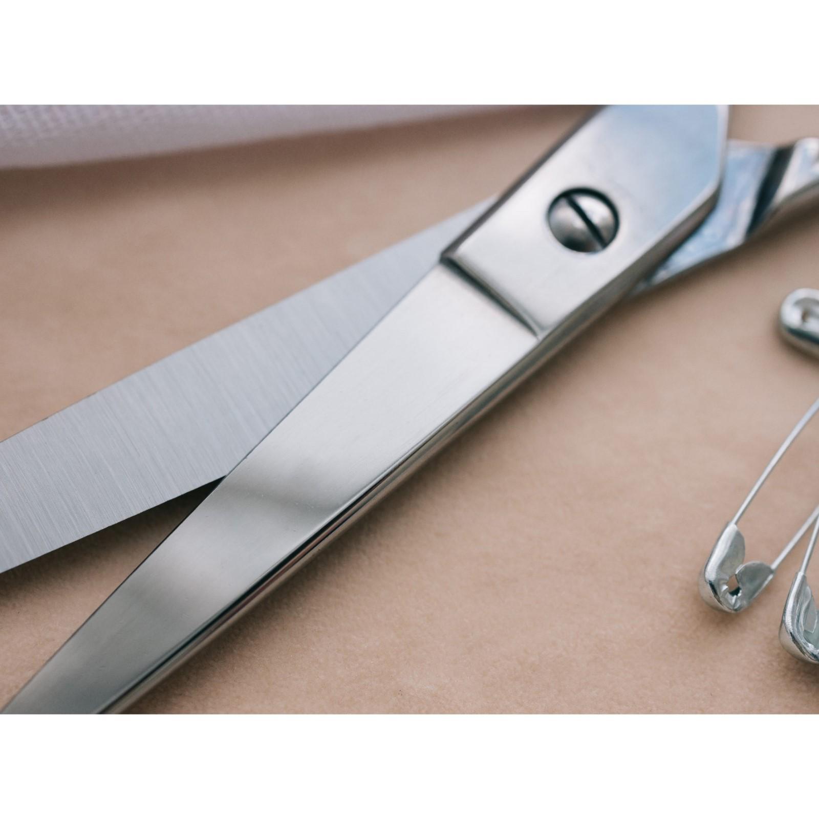 Для наиболее точного подреза краёв, вырезки углов и осноровки деталей швеи используют закройные ножницы: их форма позволяет раскраивать ткань с минимальным подъёмом полотна.