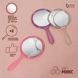 Зеркало с ручкой, двустороннее, с увеличением, d зеркальной поверхности 12,5 см, цвет МИКС