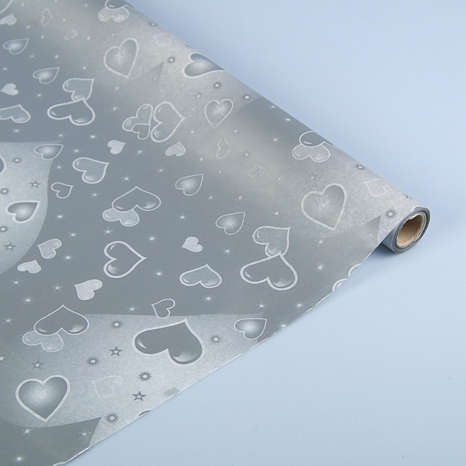 Калька для цветов вощёная "Влюбленность", цвет белый на серебряном, 0,5 х 10 м