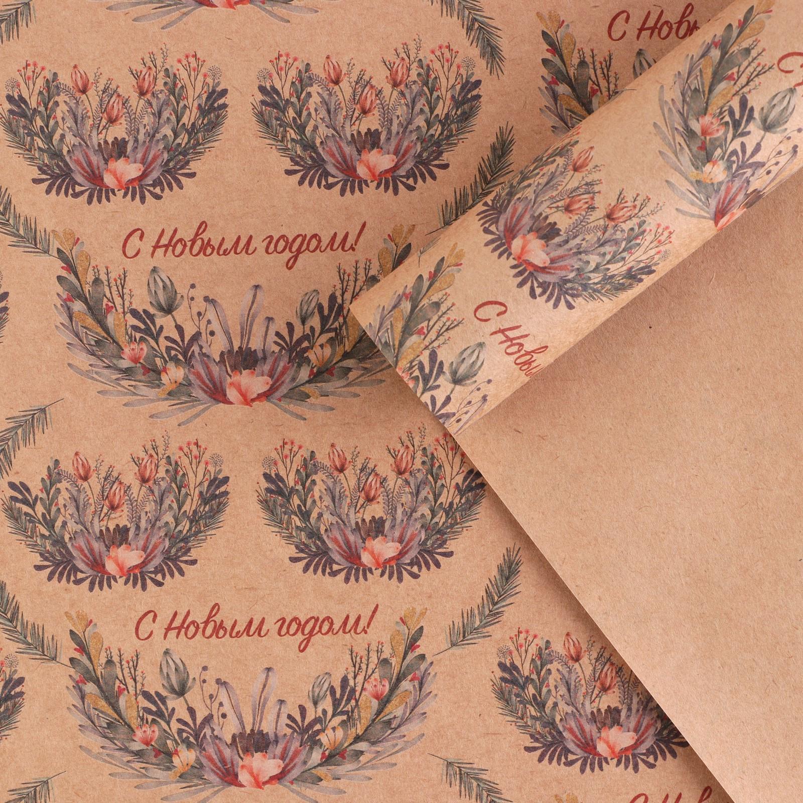 Бумага упаковочная крафтовая «С Новым годом», 50 × 70 см