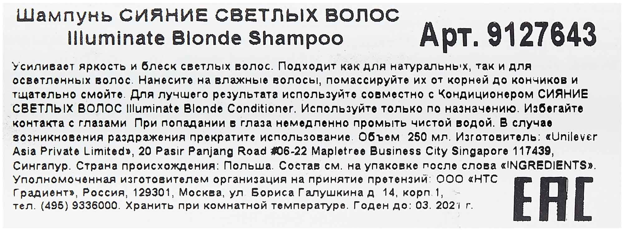 Описание товара Шампунь Toni&Guy сияние светлых волос Illuminate Blonde Shampoo 250мл
