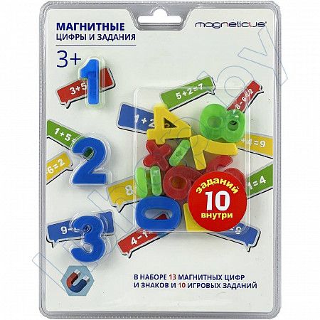 Магнитные цифры и задания"- это набор магнитных пластиковых цифр от 0-9, знаков "+", "-", "=" и карточек с 10 игровыми заданиями. Набор поможет Вашему ребенку не только выучить цифры, но и научиться решать простые примеры на сложение и вычитание. Игровые задания, входящие в набор, сделают изучение цифр и обучение счету веселым и запоминающимся. Для удобства детей мы подобрали оптимальный шрифт, формат и размер цифр. Магнитные цифры держатся на любой железной поверхности, будь то дверь холодильника или игровое поле. Начните обучение математике вместе с игровым набором «Магнитные цифры и задания»!"