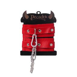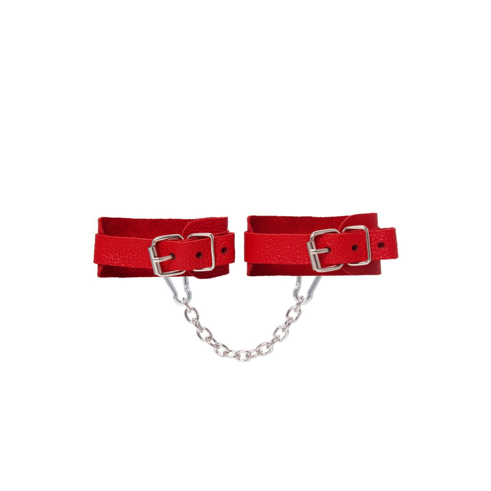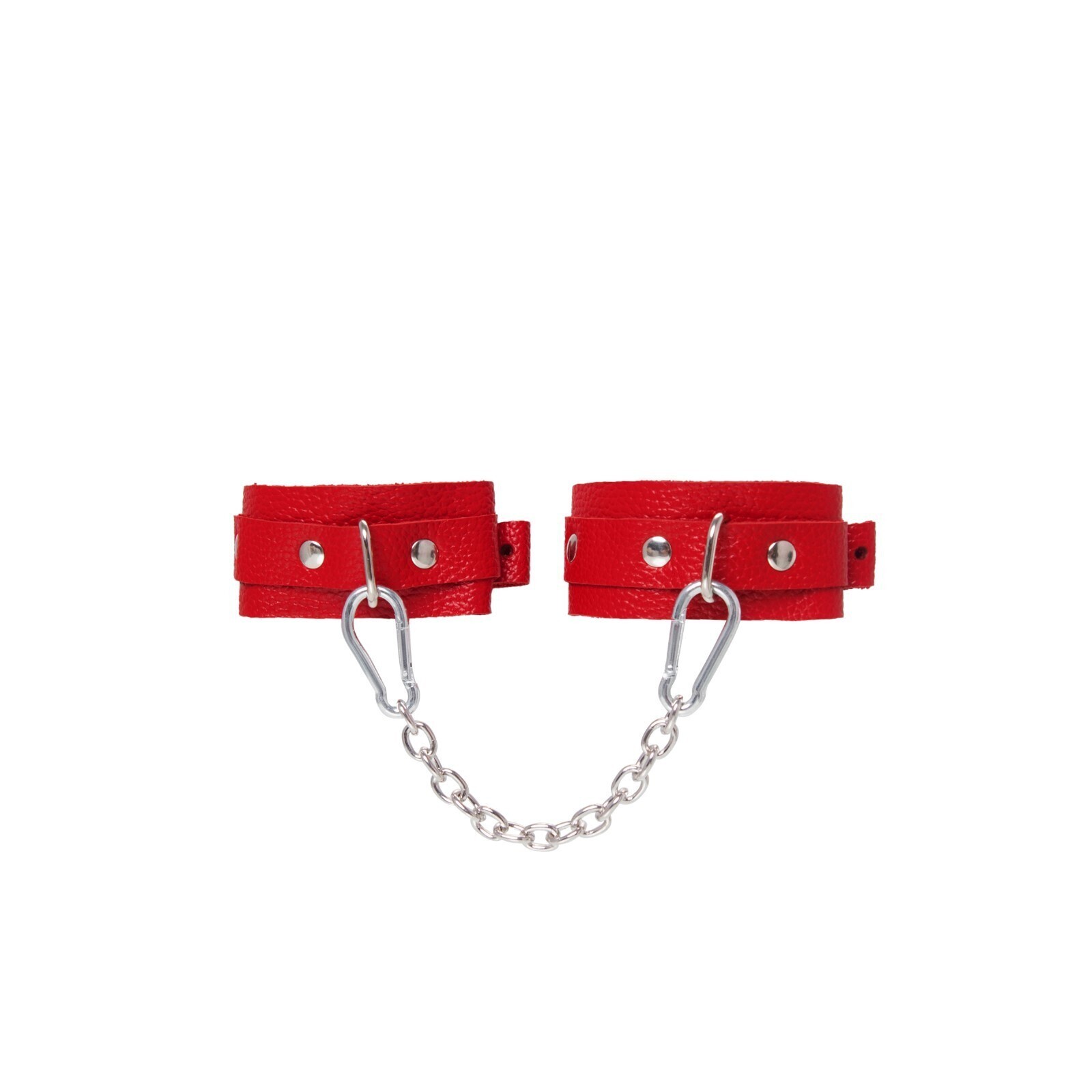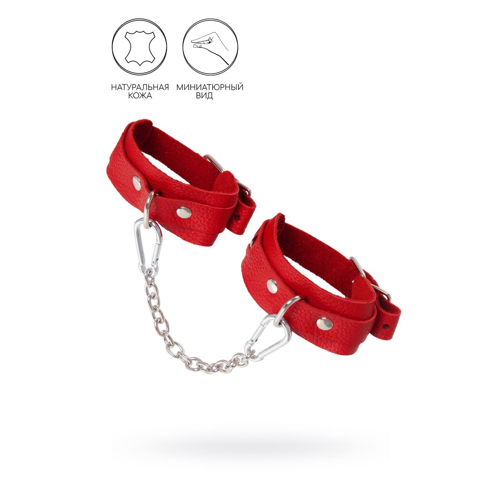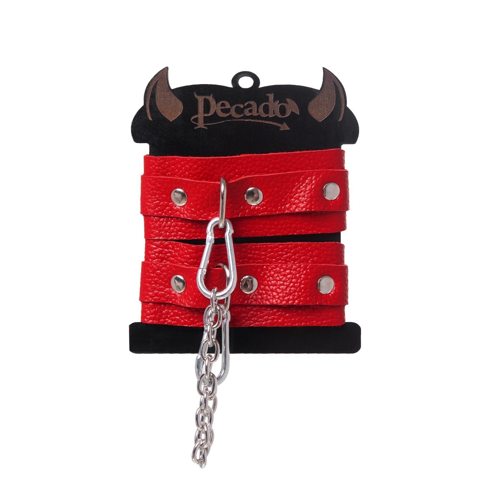 Оковы мини Pecado BDSM, со скруглёнными углами, натуральная кожа, красные