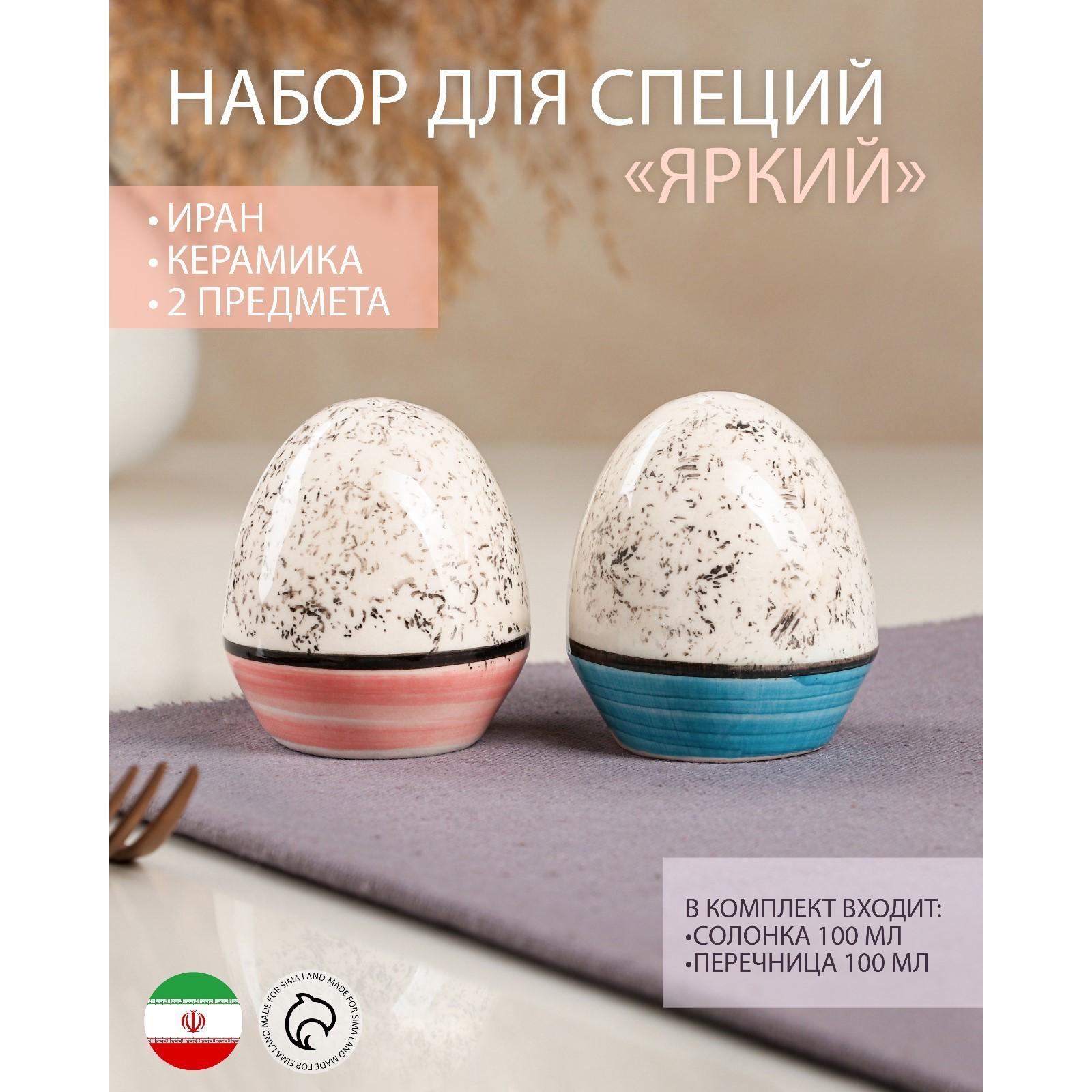 Набор для специй "Яркий", керамика, розовый, синий, 2 предмета, 100 мл, Иран