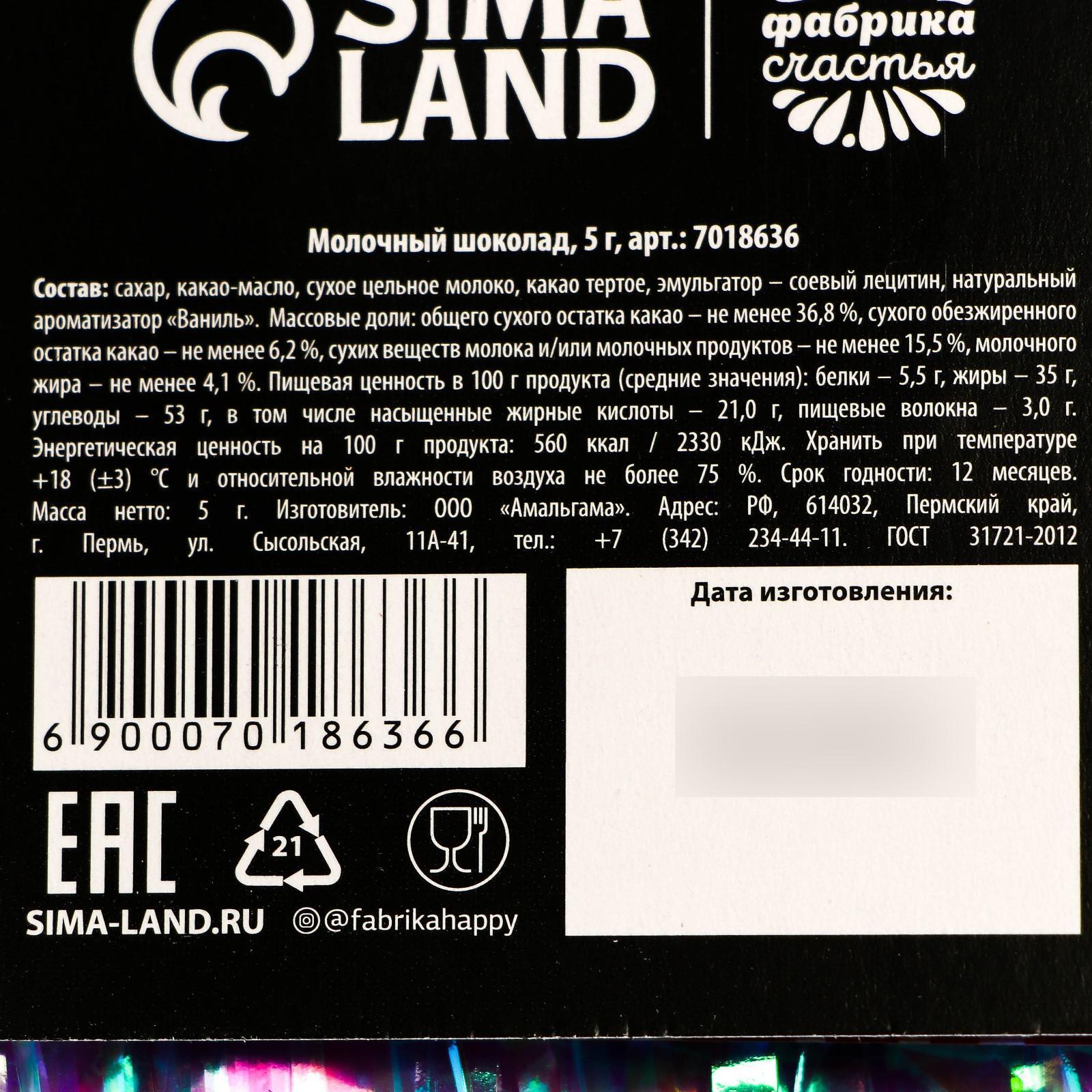 Молочный шоколад в открытке «Побольше сладостей», 5 г.