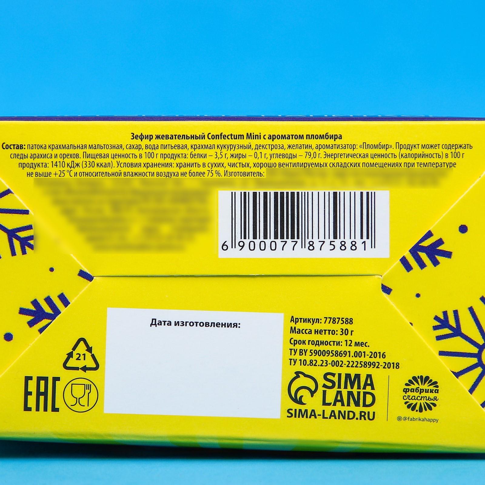 Состав: патока крахмальная мальтозная, сахар, вода питьевая, крахмал кукурузный, декстроза, желатин, ароматизатор: «Пломбир».