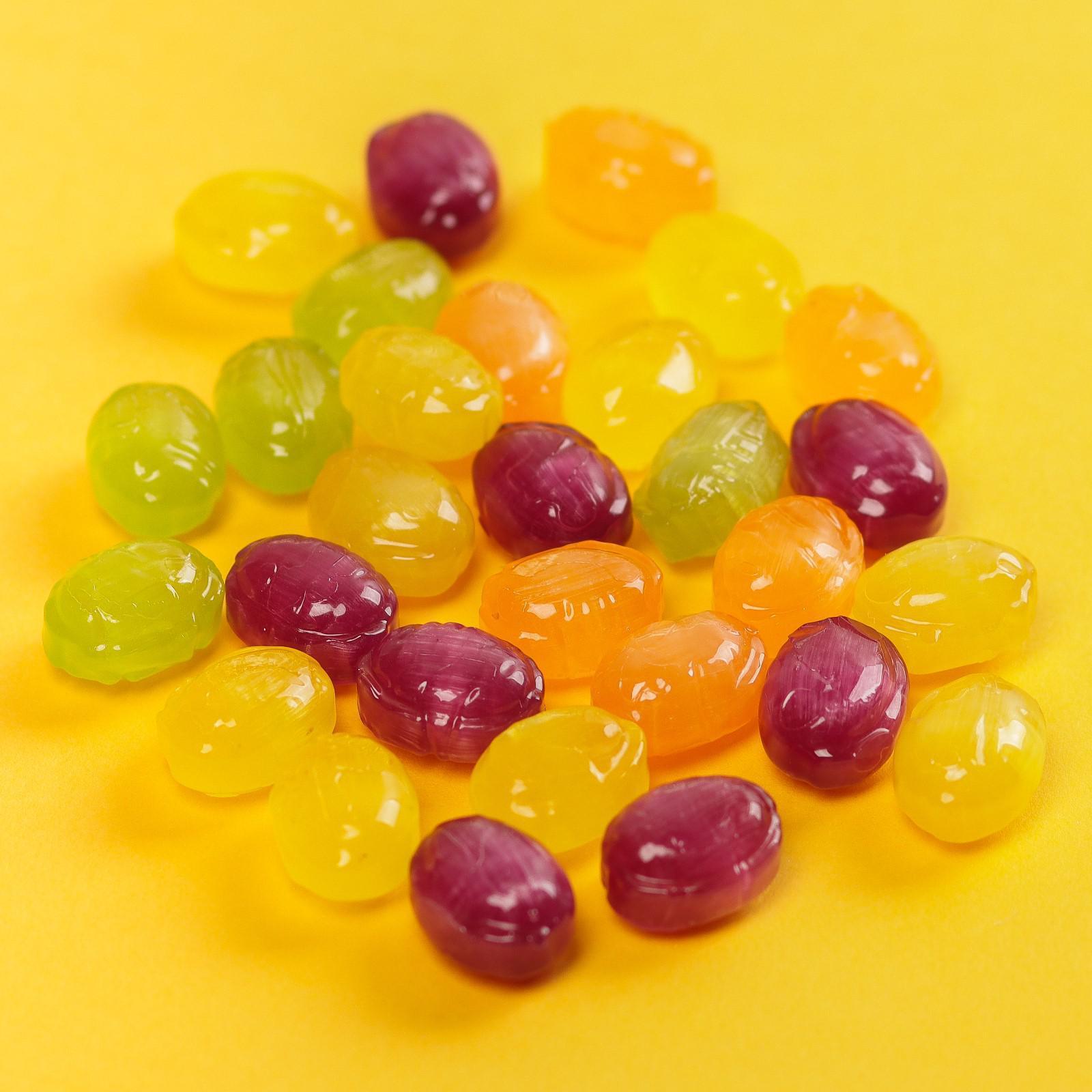 Состав: сахар, сироп мальтозный, регулятор кислотности – кислота лимонная, ароматизаторы (апельсин, дыня, лимон-лайм, тропические фрукты, лесные ягоды), красители пищевые натуральные (куркумин, кармин, экстракт паприки, медные комплексы хлорофиллов, антоцианы). Пищевая ценность в 100 г продукта: жиры – 0,1 г, углеводы – 97,0 г.