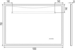 Габариты (Ш Г В): 100x3x70 см Материал корпуса: ДСП Покрытие корпуса: пленка Подсветка в полотне С сенсорным выключателем, управляется легким касанием сенсорной кнопки Оснащение зеркала: bluetooth-приемник / подвесы