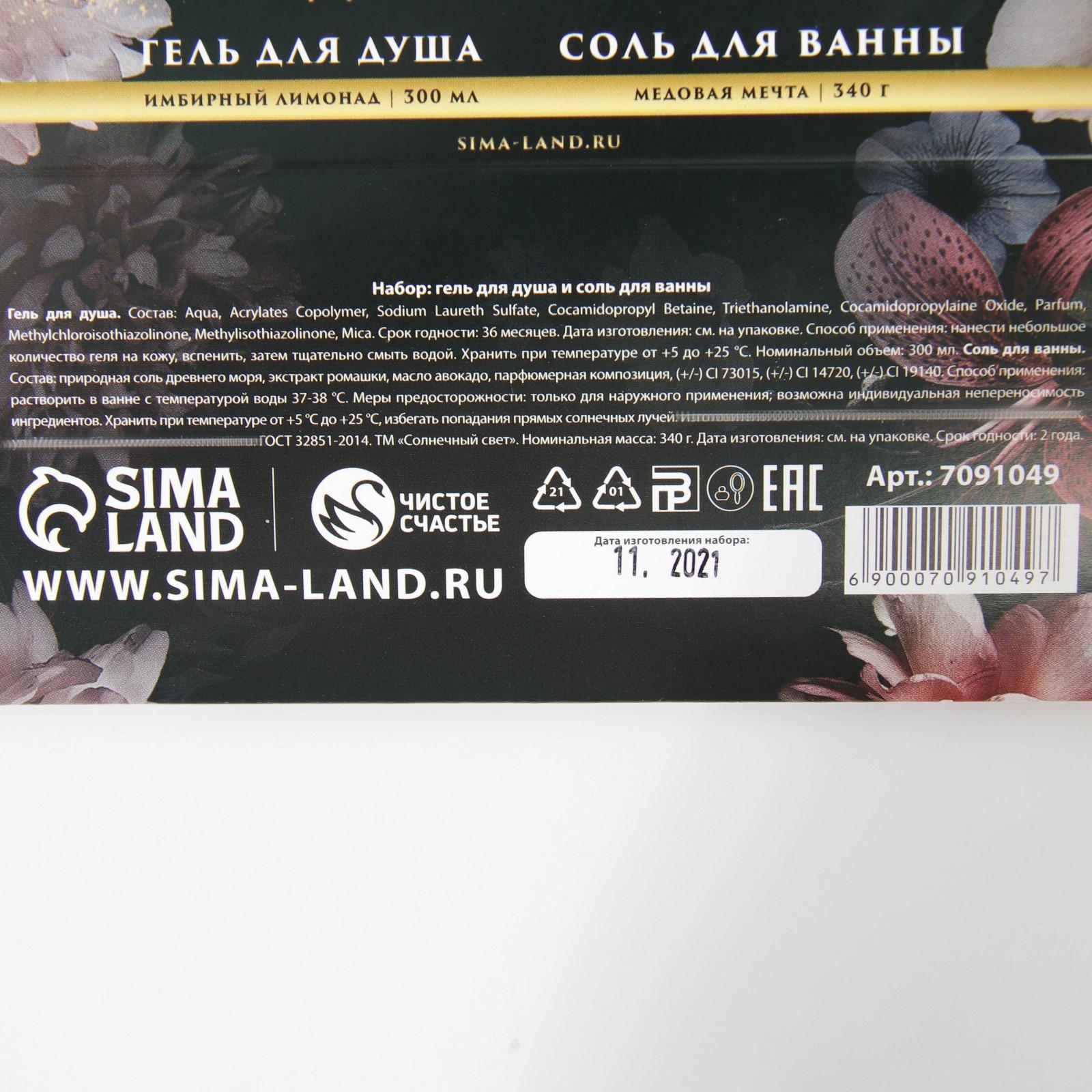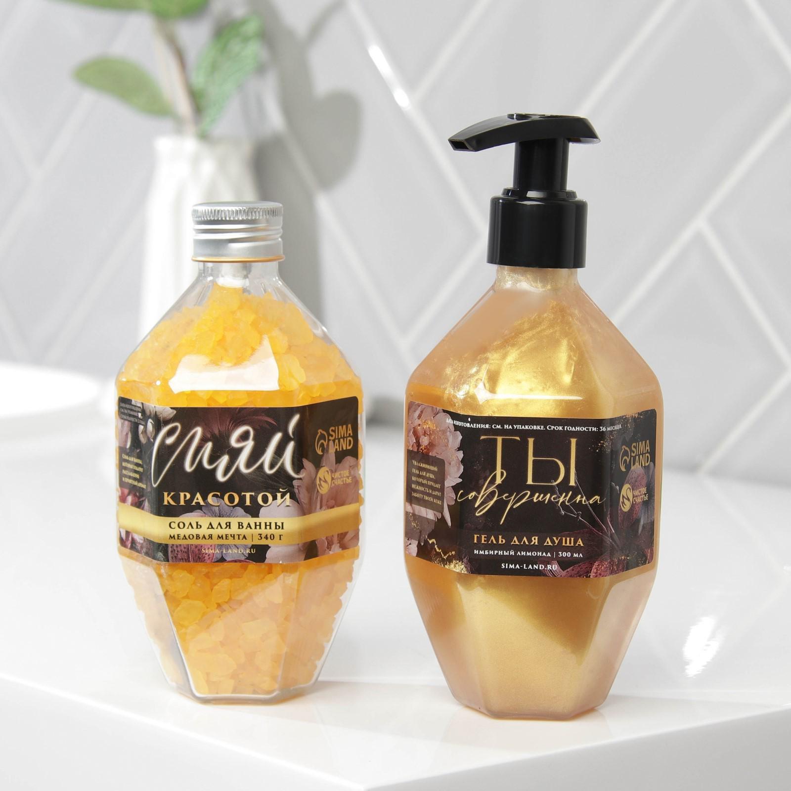 Набор "Сияй!", гель для душа, аромат имбирный лимонад, 300 мл; соль для ванны, медовые мечты, 340 г
