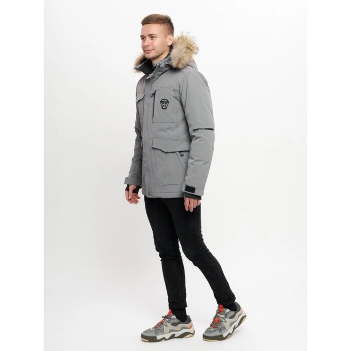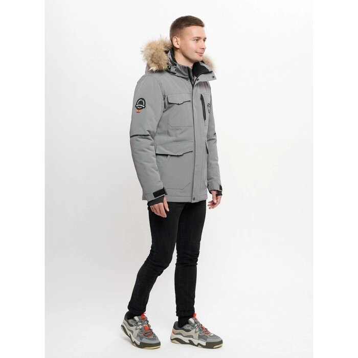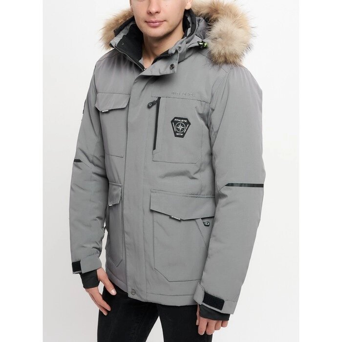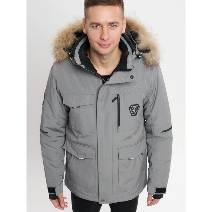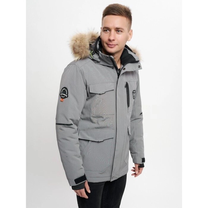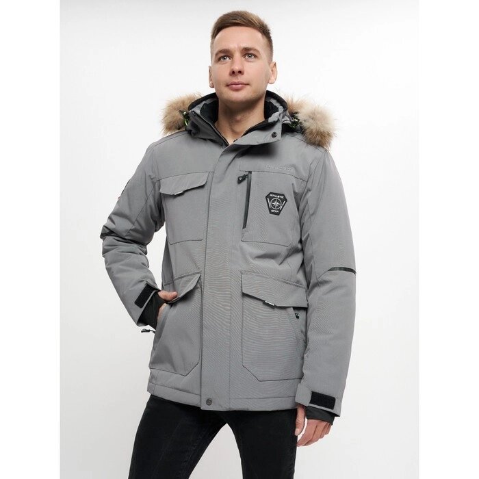 Куртка зимняя мужская удлиненная с мехом, цвет хаки размер 54