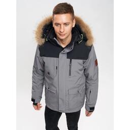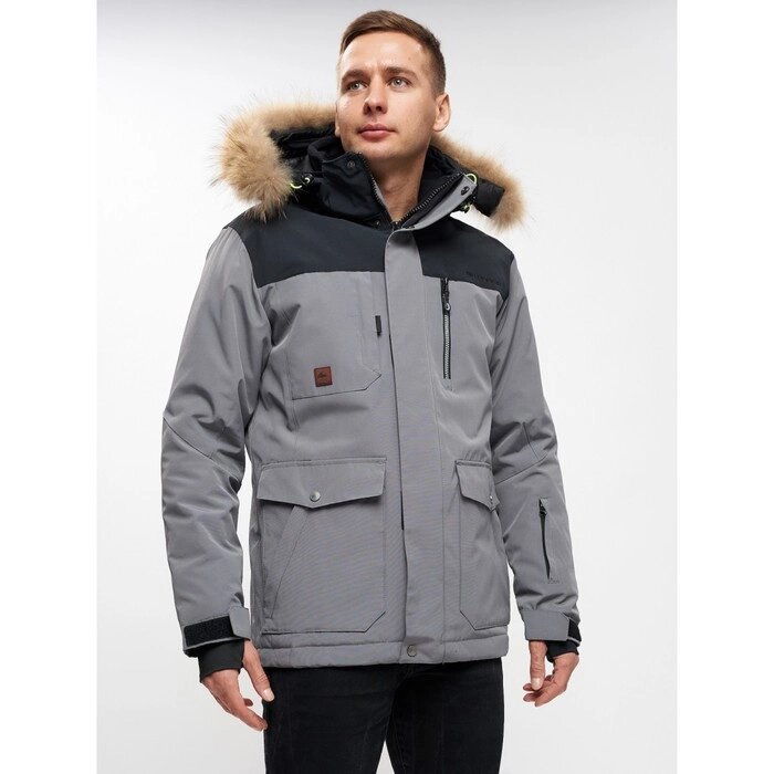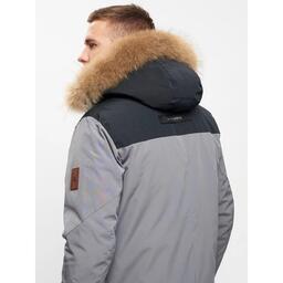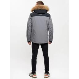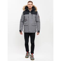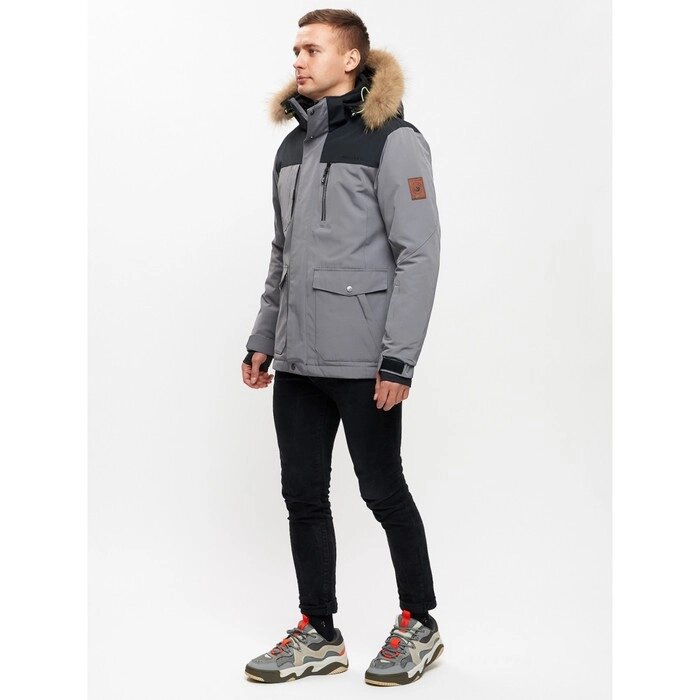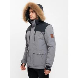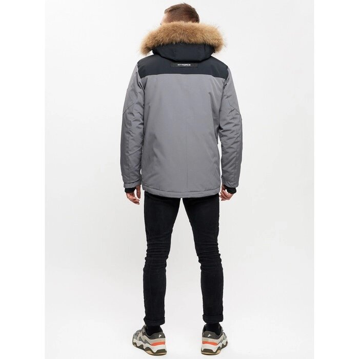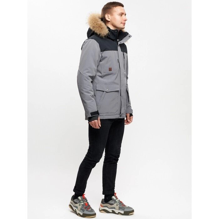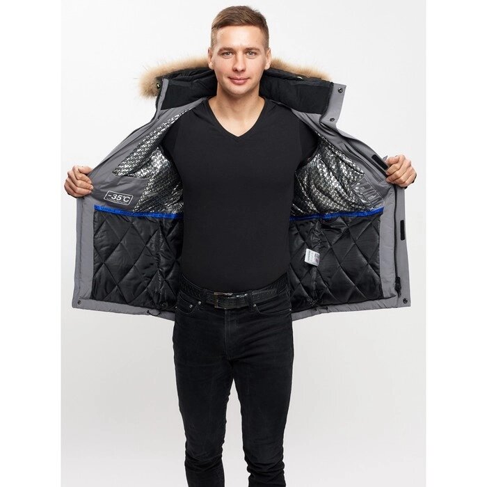 Куртка зимняя мужская удлиненная с мехом серого цвета, размер 56