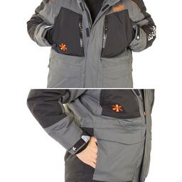 Удобный зимний костюм со всеми необходимыми элементами, предназначенными для зимней рыбалки. Предназначен для эксплуатации при температуре до –35°С. Мембранная ткань. КУРТКА: Проклеенные швы, двух замковая застежка-молния YKK с клапаном, капюшон крепится с помощью замка-молнии, двухуровневая регулировка капюшона. Фиксатор, стягивающий куртку в области талии, фиксатор стягивающий низ куртки. Удобные карманы внутри и снаружи, два наружных кармана с влагозащитными застежками-молниями, теплый карман для мобильного телефона. Эластичные манжеты, регулируемые наружные манжеты на рукавах. Усиление материала на плечах. Светоотражающие нашивки безопасности. ПОЛУКОМБИНЕЗОН: Регулируемые по длине лямки, нагрудный карман, два наружных кармана с замками-молниями. Два накладных вместительных кармана, усиление материала в области колен и седалища, внутренние снегозащитные гетры.