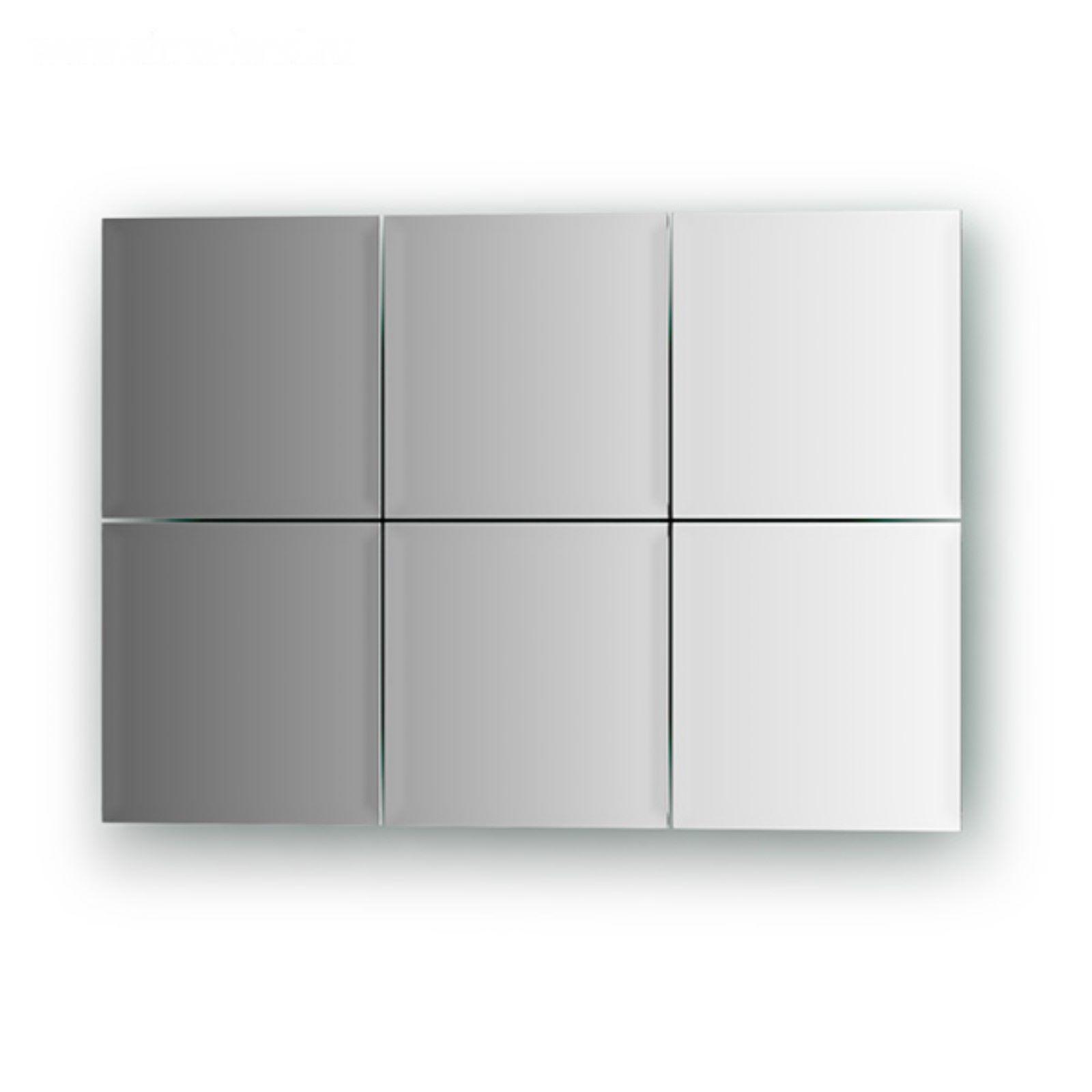 Зеркальная плитка с фацетом 10 мм, - комплект 6 шт квадрат 15 х 15 см, серебро Evoform