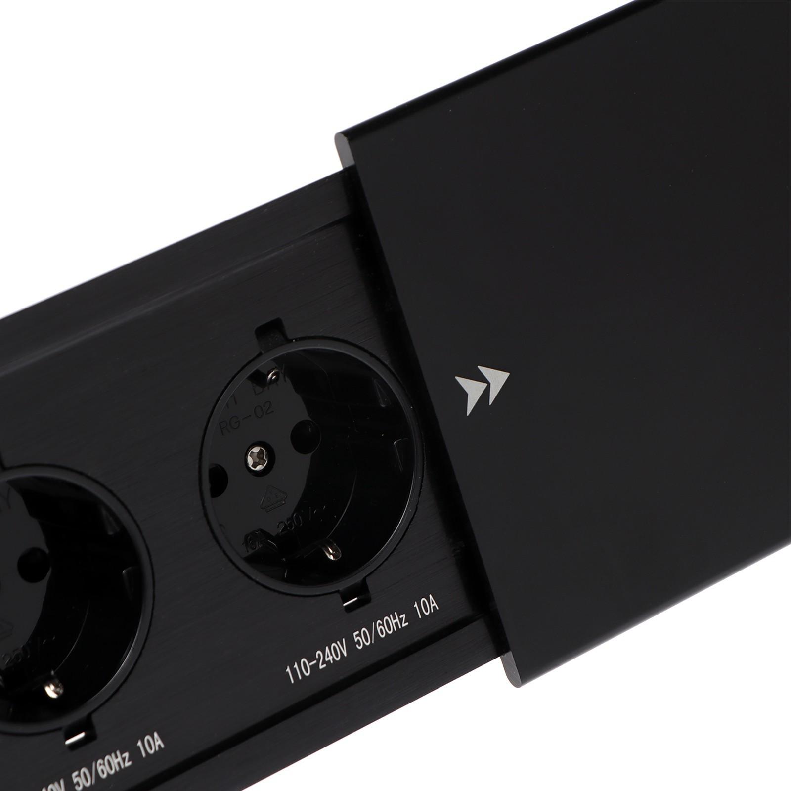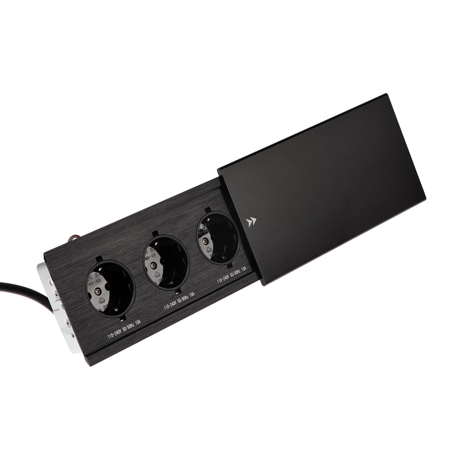 Блок розеточный в стол, сдвижная крышка, 10А, 3 розетки, провод 1.8 м, черный