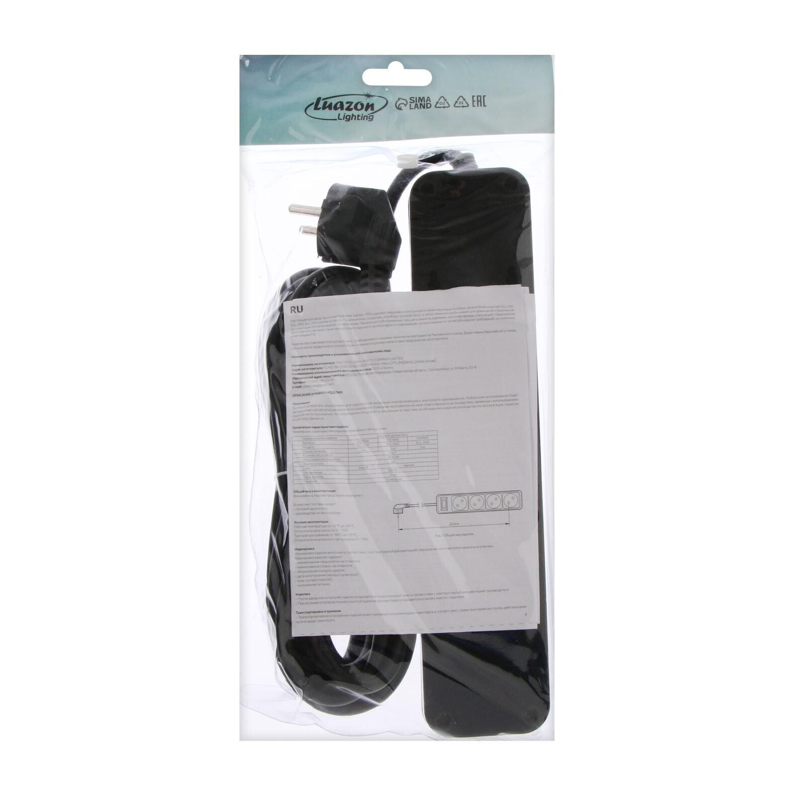 Удлинитель Luazon Lighting, 2 евро+2 унив.роз., 3 м,2200Вт, 2х0.75 мм2, 3хUSB, с выключателем, чёрный