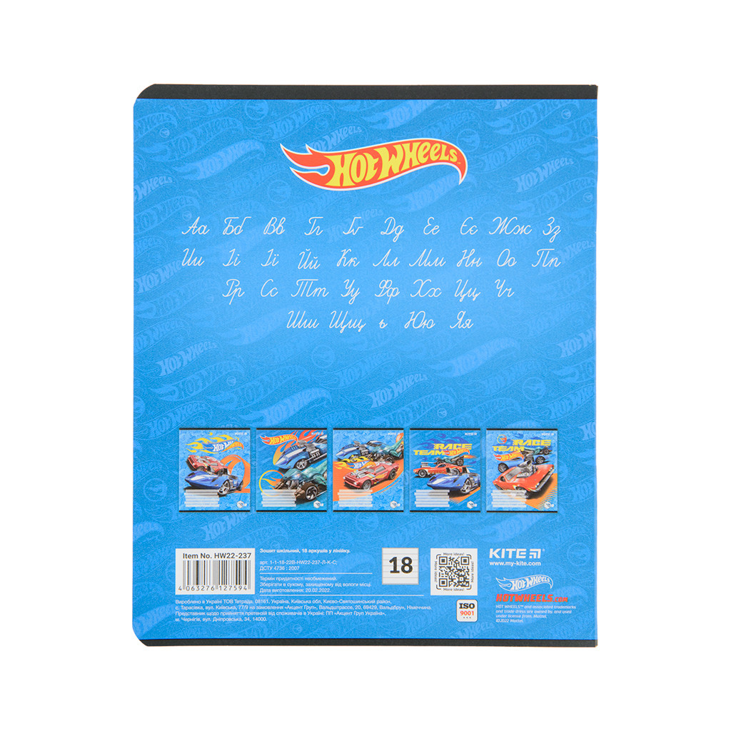 Зошит Kite Hot Wheels , 18 аркушів, лінія (HW22-237)