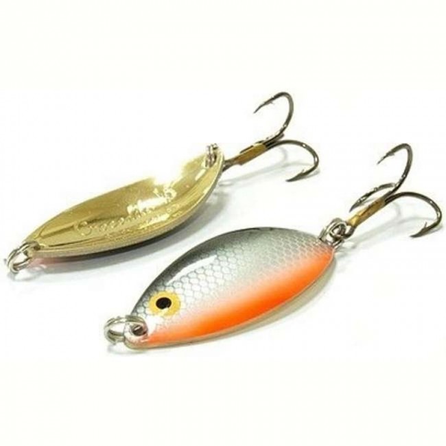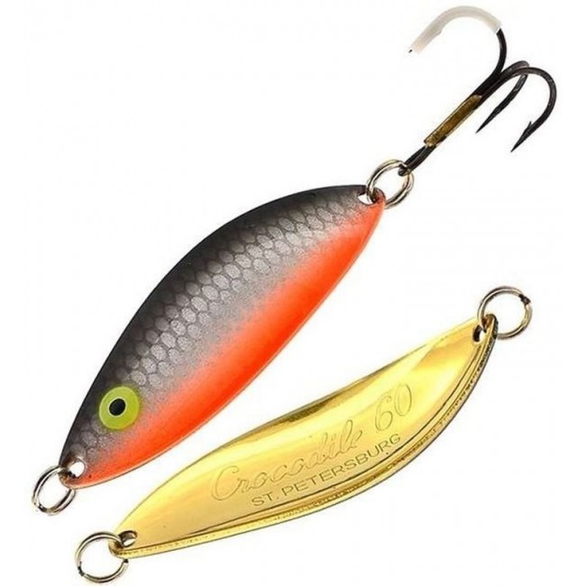 При разработке этой приманки за основу была взята классическая модель шведской фирмы “ABU” прошлых лет. Полученная блесна, полностью сохранившая форму образца, имеет чеканку не только на внутренней, но и на наружной стороне с изображением профиля крокодила. Блесна КРОКОДИЛ выпускается в двух весовых вариантах: 8 и 11 граммов, что расширяет ее использование в зависимости от глубины и скорости течения водоема. Цветовое оформление - три базовых цвета: S, C, G, а также несколько наиболее актуальных вариантов окрашивания: GFR, FT и другие. Эта маленькая блесна длиной 45 мм является универсальной и прекрасно ловит язя, головля, окуня, щуку и всех лососевых.