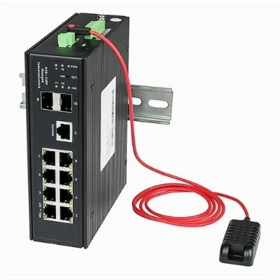 Промышленный управляемый (L2+) коммутатор Gigabit Ethernet на 8GE RJ45 + 2 GE SFP порта с функцией мониторинга температуры/ влажности/ напряжения.