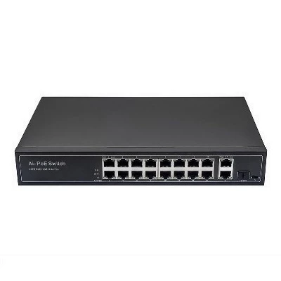 PoE коммутатор Fast Ethernet на 16 x RJ45 PoE + 2 x RJ45 GE + 1 SFP GE порта. Соответствует стандартам PoE IEEE 802.3af/at. Автоматическое определение и режим антизависания PoE устройств.