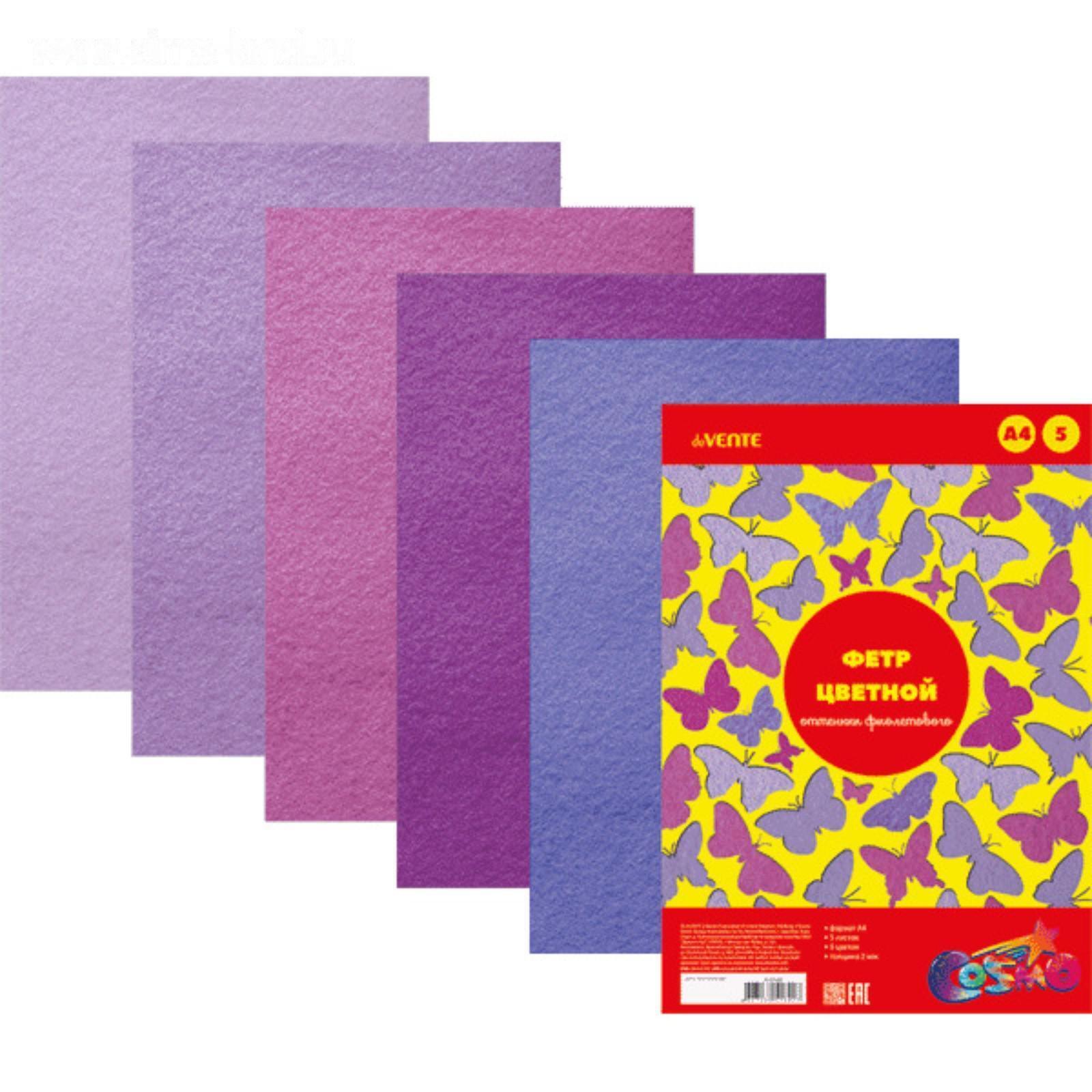 Фетр цветной мягкий A4 deVENTE. "Оттенки фиолетового" 5 цветов, 5 листов, толщина 2 мм