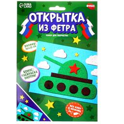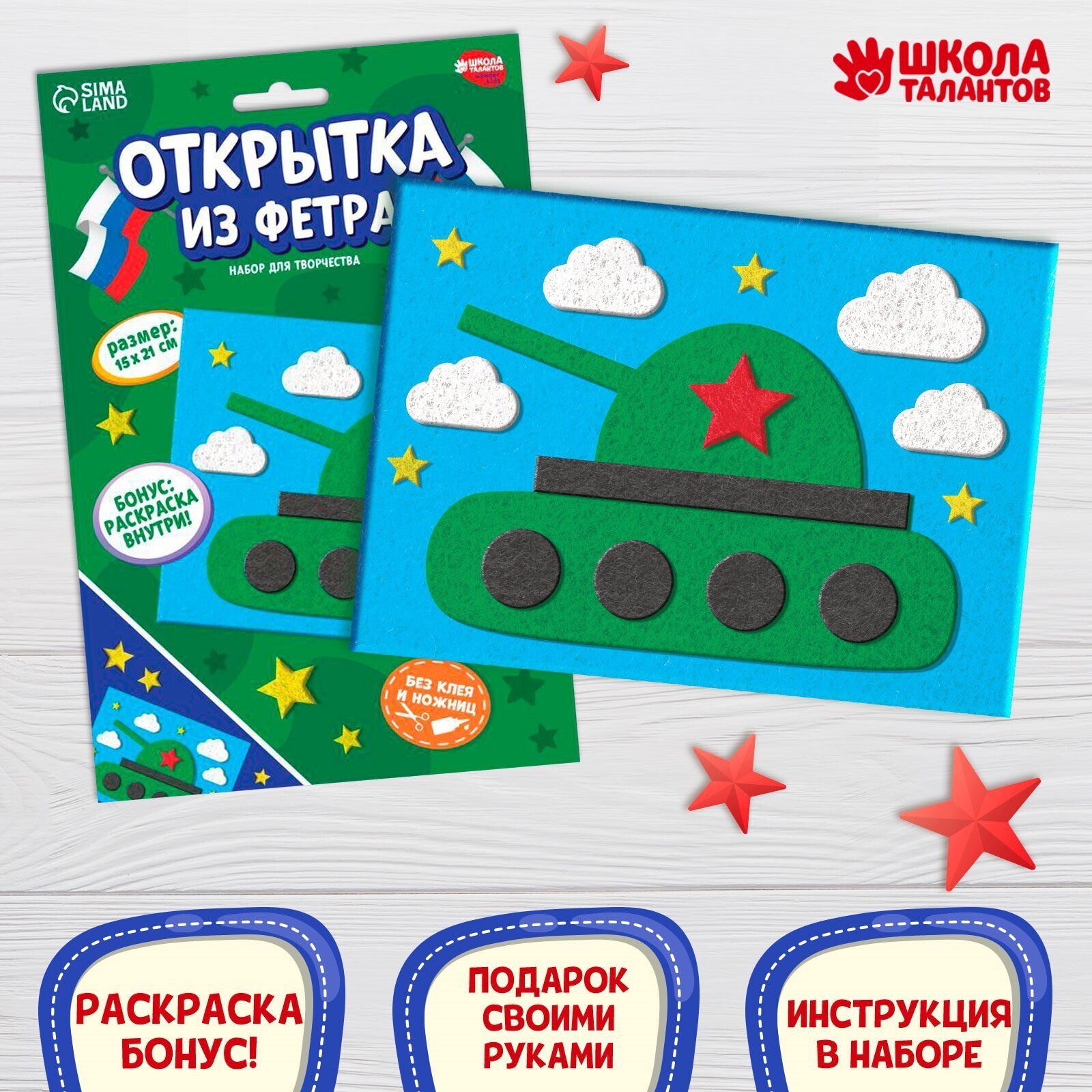 В набор входит основа и фигурки из фетра с клейкой основой. Малышу достаточно приклеить фигурки к основе и замечательный подарок готов! Открытку можно подарить близкому человеку.