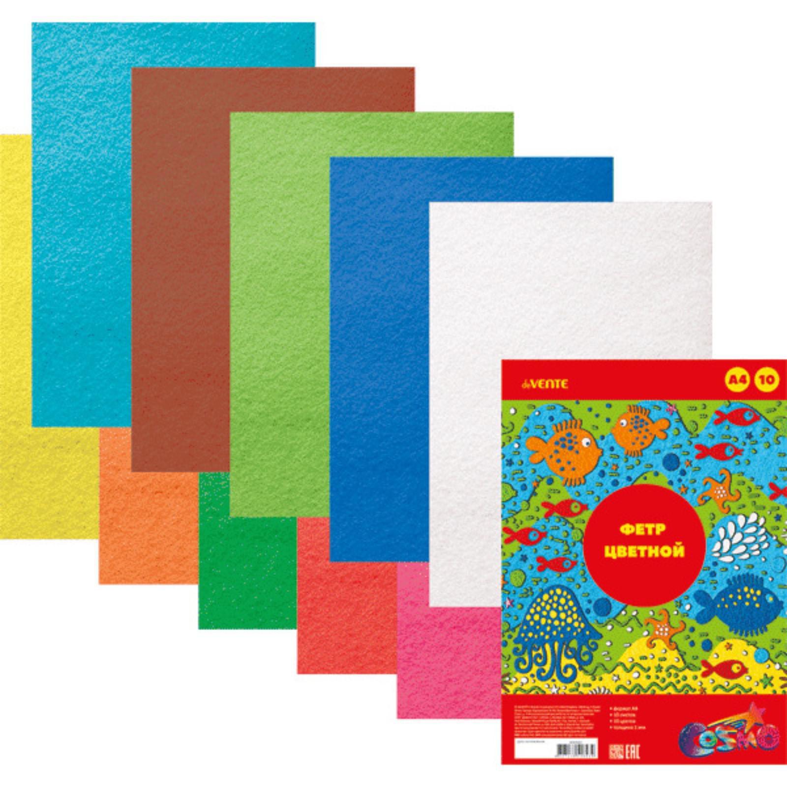 Фетр цветной мягкий A4 deVENTE. "Яркие цвета" 10 цветов, 10 листов, толщина 1 мм