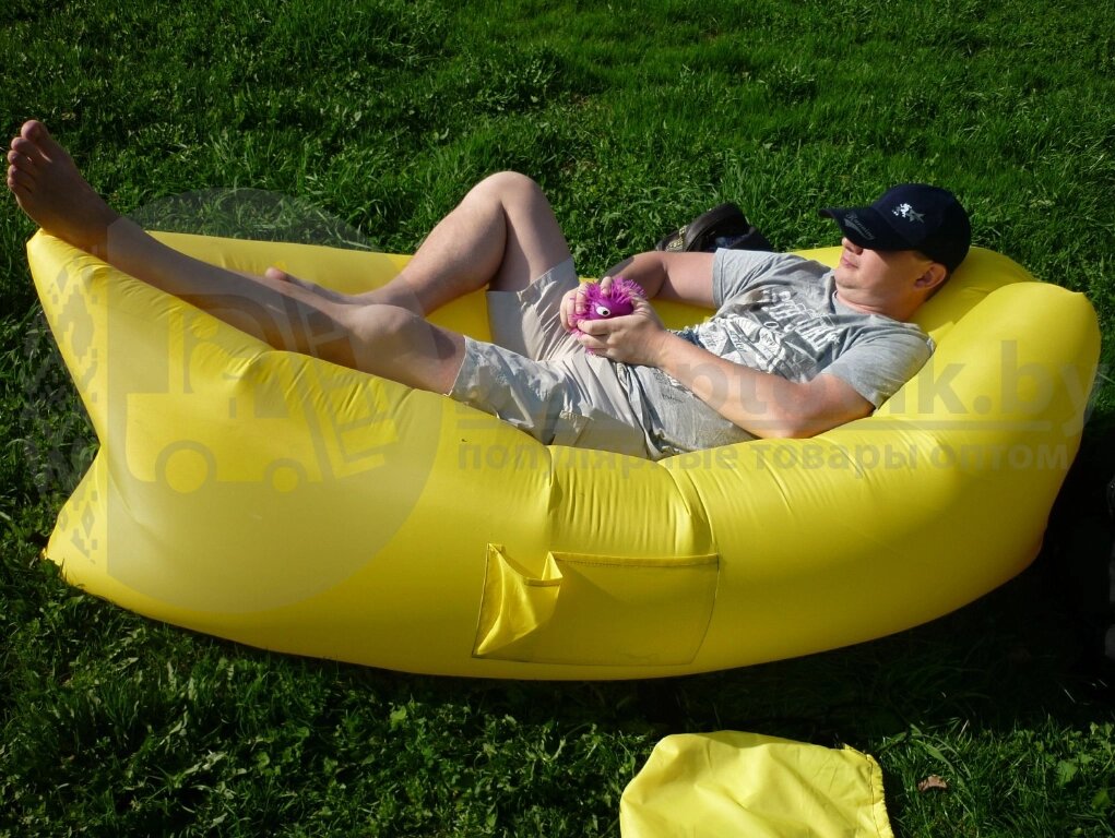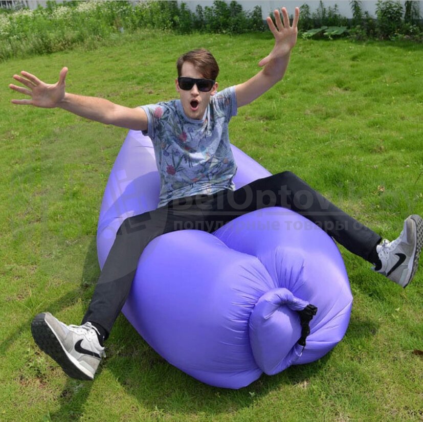 Надувной диван (Ламзак) XL дл. 215 см, с двумя кармашками Голубой