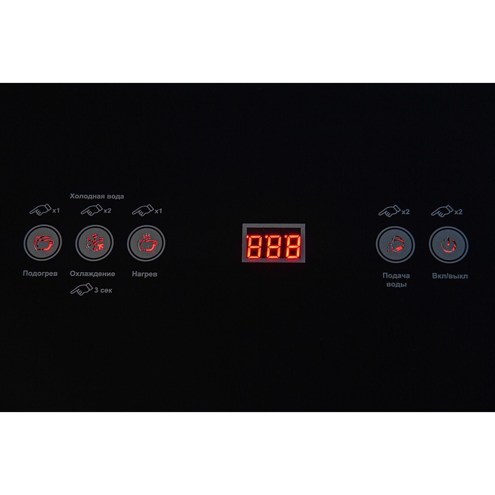 Охлаждение воды включается отдельной кнопкой, но можно задать поддержание охлаждения в автоматическом режиме. Панель управления сенсорная, на русском языке, с информационным дисплеем.
