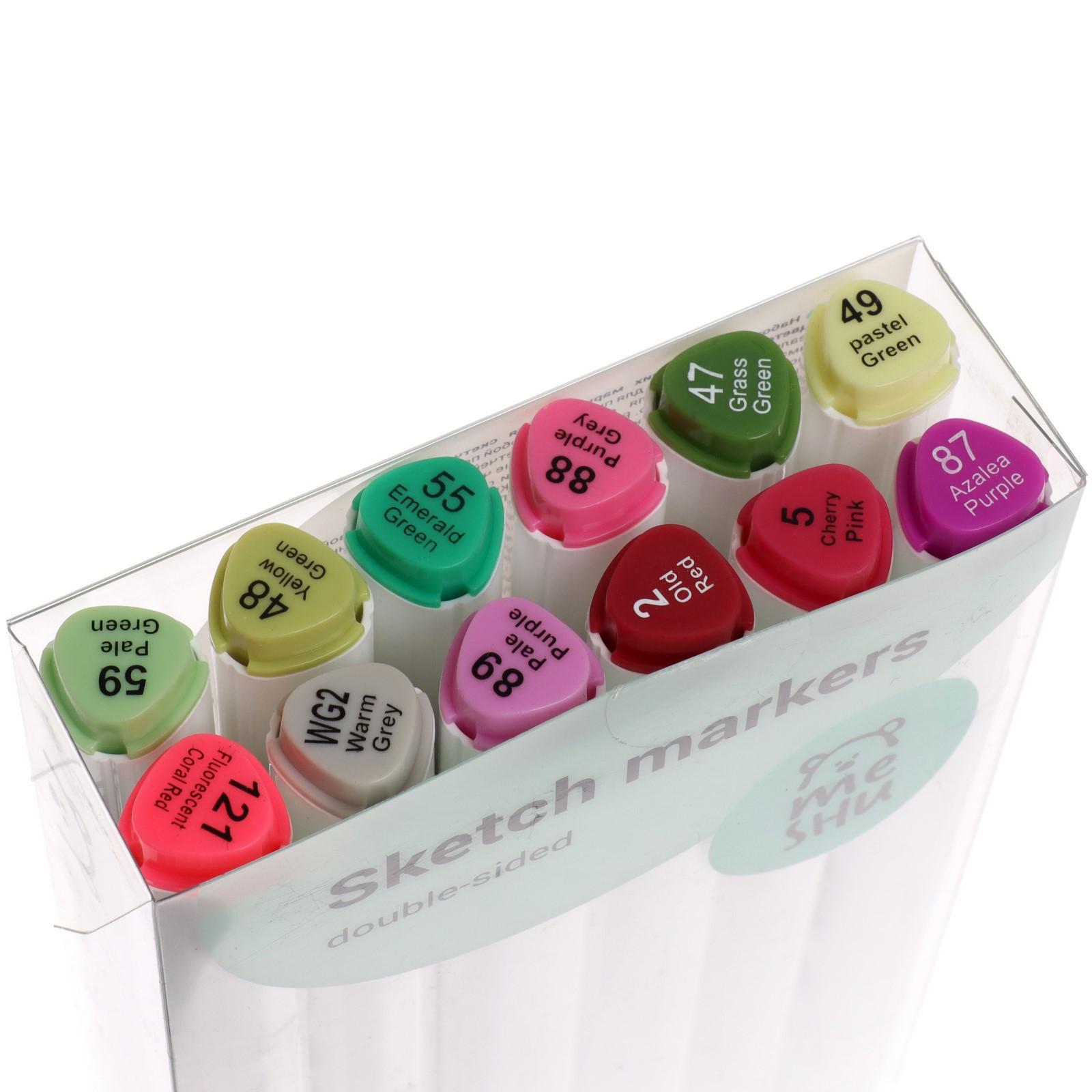 Маркеры для скетчинга двусторонние MESHU, 12 цветов (цветочная гамма)