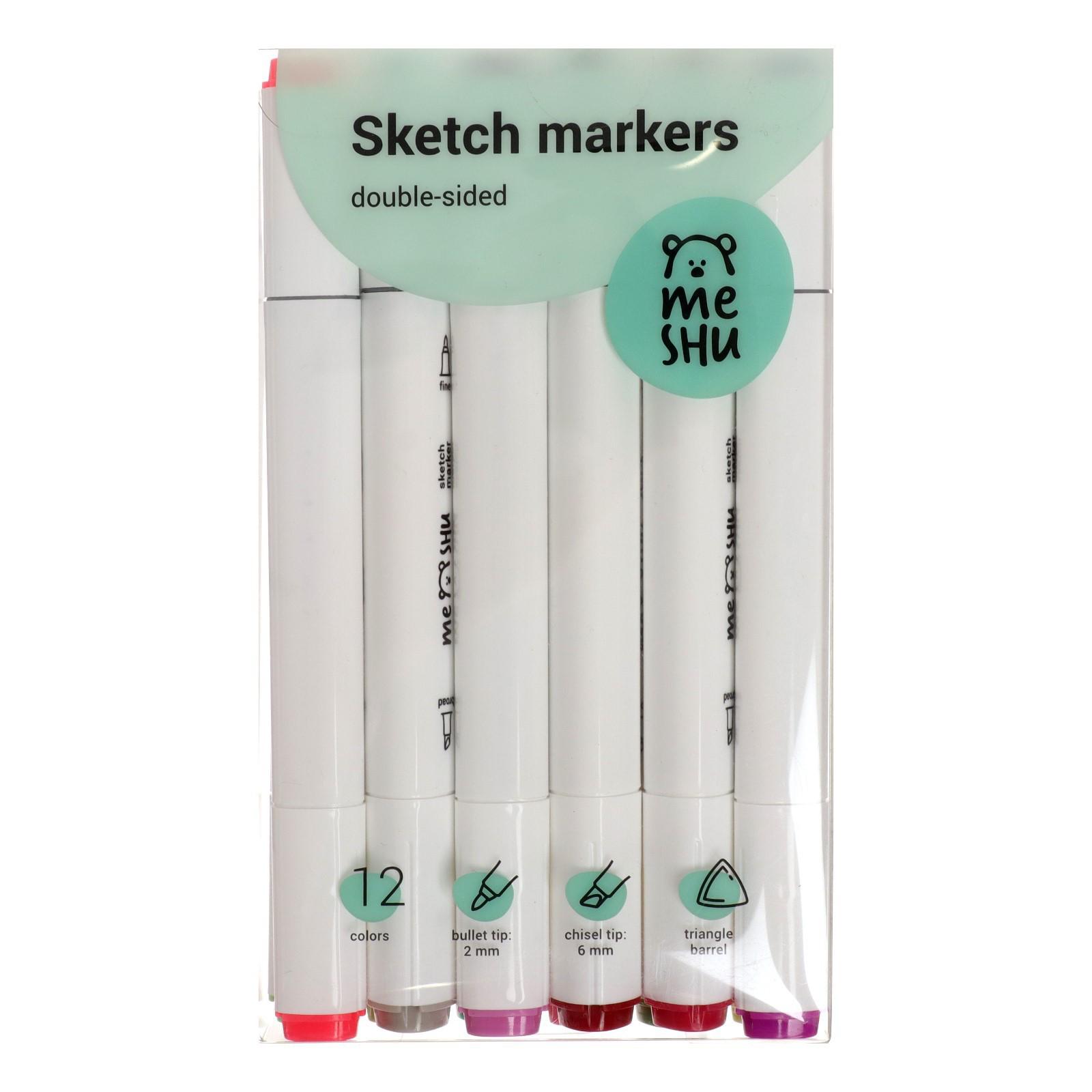 Набор двусторонних маркеров для скетчинга Meshu - идеальный выбор для художников, дизайнеров, иллюстраторов и любителей скетчинга, подходят для создания анимэ и манги. Эргономичный трехгранный корпус удобно лежит в руке и позволяет эффективно прорабатывать мелкие детали рисунка. Чернила на спиртовой основе - быстро высыхают, водостойкие, нетоксичны и не портят поверхность бумаги. Маркеры обладают пулевидным (2 мм) и скошенным (6 мм) наконечниками, что позволяет прорабатывать как мелкие детали рисунка. так и закрашивать большие области.