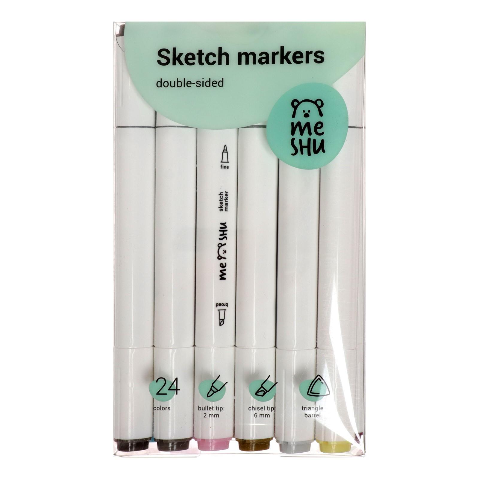 Маркеры для скетчинга двусторонние MESHU, 24 цвета (пастельные цвета)